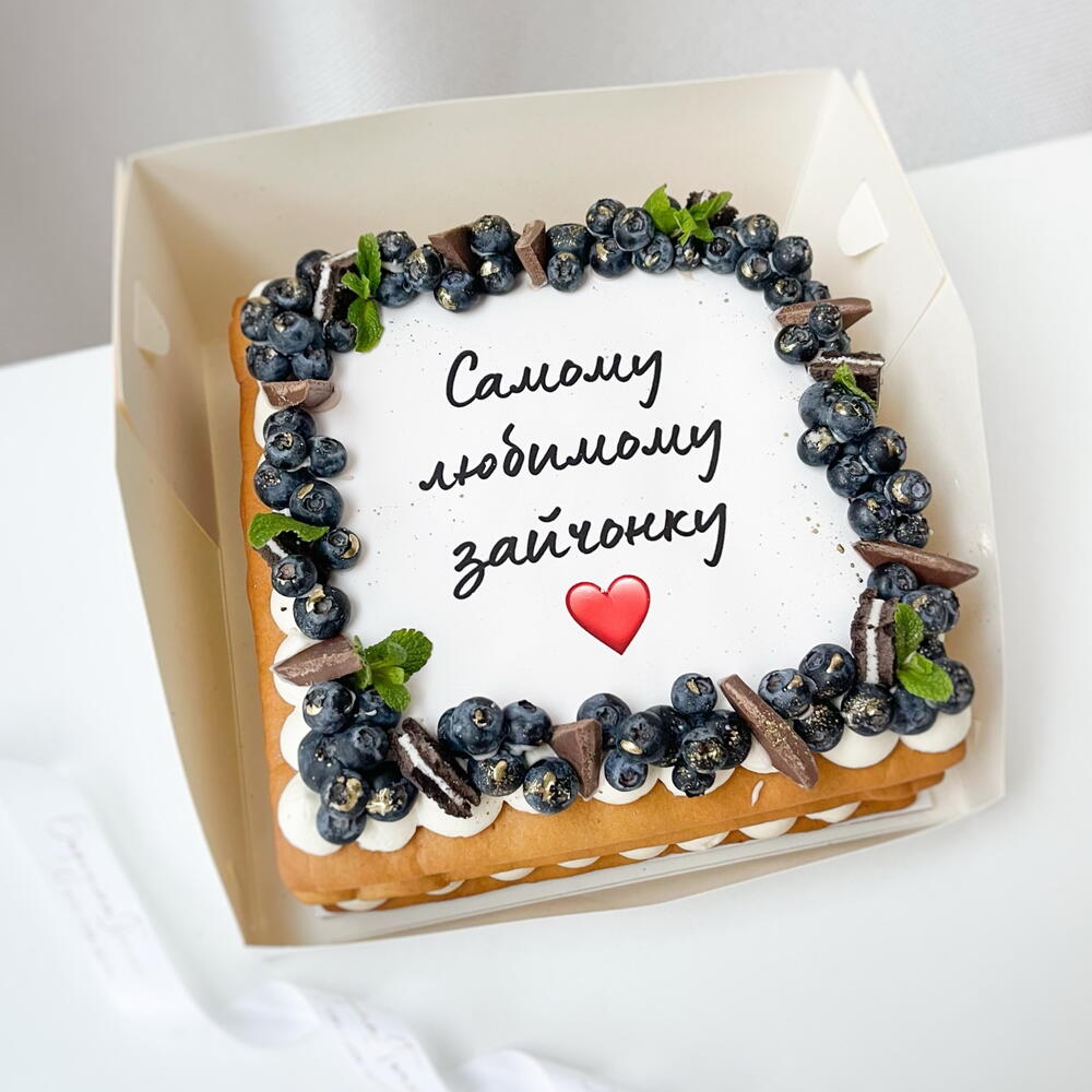 Воздушные медовые коржи, сливочный ароматный крем и прослойка на ваш выбор - такой торт создан, чтобы удивлять💔 На торт можем нанести ваш логотип, название компании, поздравление, любую надпись/картинку/фото В стоимость включено - оформление голубикой, печеньем Упакован в коробку с прозрачной крышкой, перевязан атласной лентой🎈В подарок идет - открытка, свечка, конфетти 🛍️В корзине вы можете добавить к заказу порционные десерты и премиум упаковку ВАЖНО ▪️Срок годности 72 ч. ▪️Хранить при температуре +2 - +5 гр С ▪️Перед подачей достать на 10-15 минут из холодильника ▪️Перед употреблением с торта необходимо снять все декоративные элементы Наши десерты подойдут под любой повод: день рождение, подарок парню, мужчине, юбилей, маме, бабушке