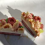 Бисквит: Мука, сахар, сироп топинамбура, яйцо, сода, какао , кефир, растительное масло, краситель. Начинка: Клубника Агар-Агар Сироп Топинамбура( натуральный подсластитель ( Мусс: Бельгийском шоколад Gallebaut Сливки 33% Желатин Декор - Цветы Бельгийском шоколаде Gallebaut Сливки 33% Желатин