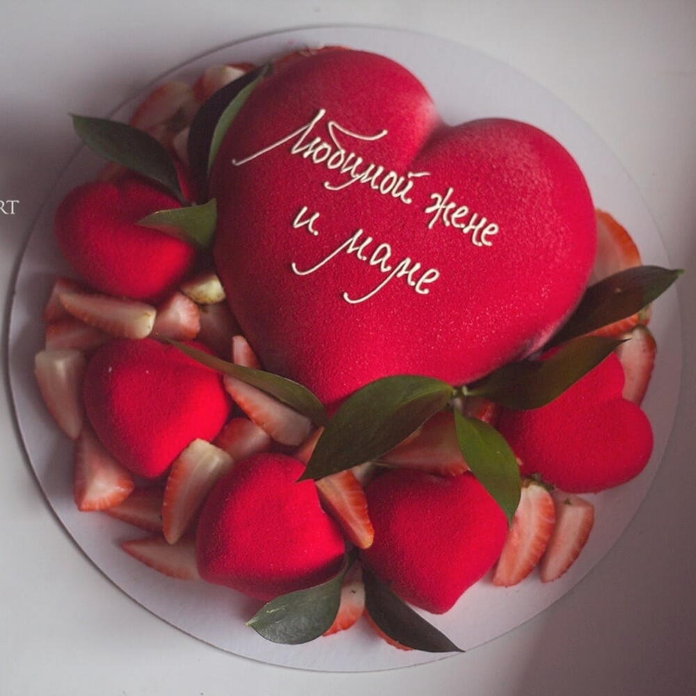 Торт муссовое сердце "Любимой жене , маме