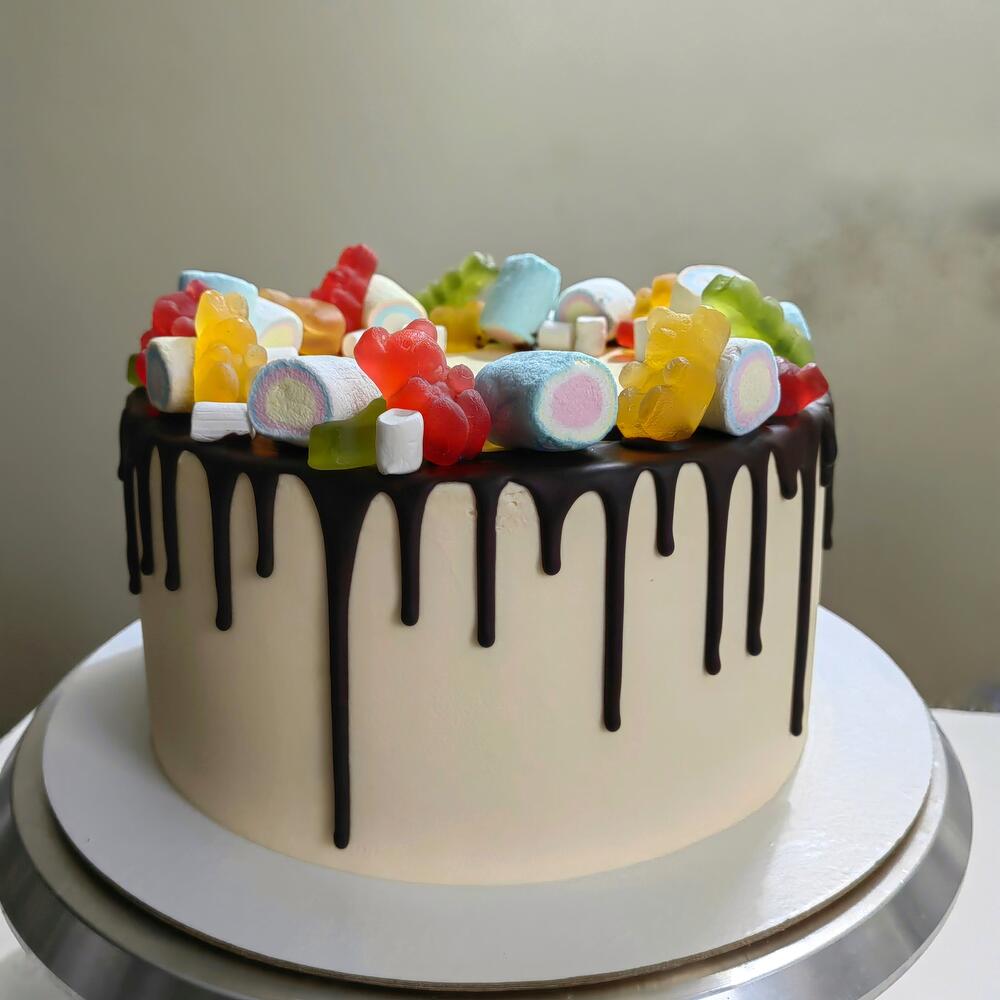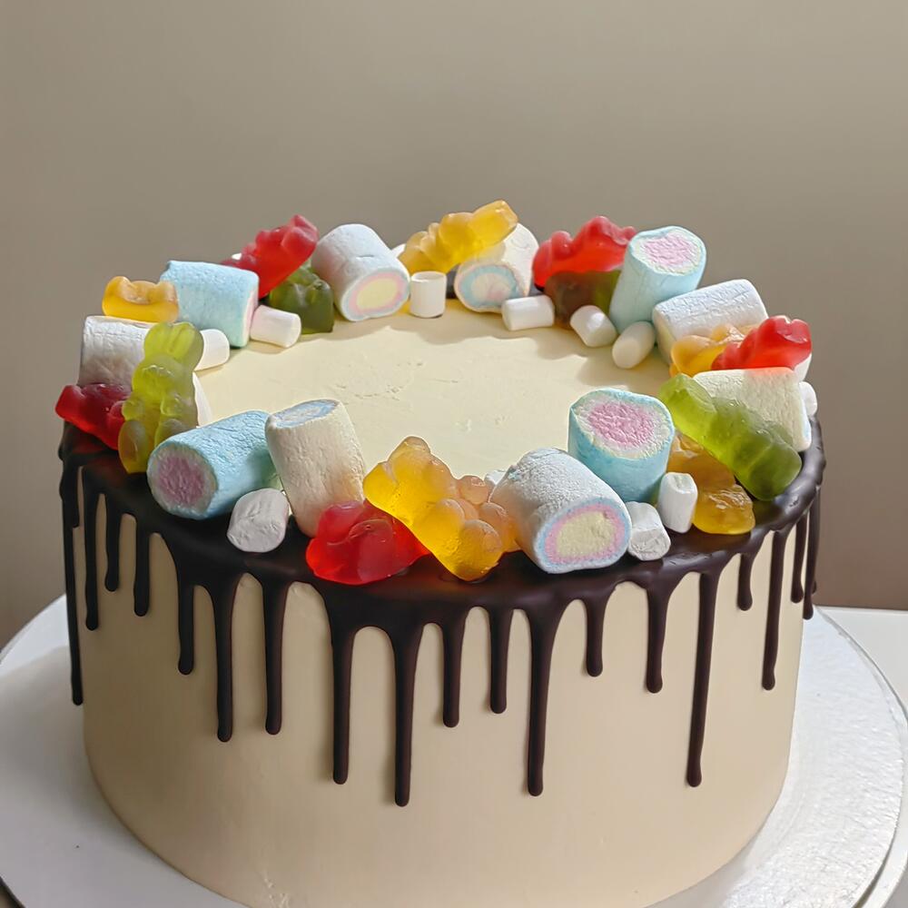 Торт на детский день рождения с маршмеллоу и мармеладками