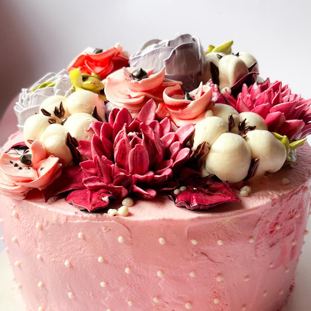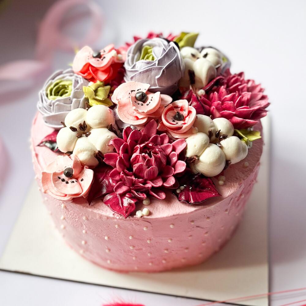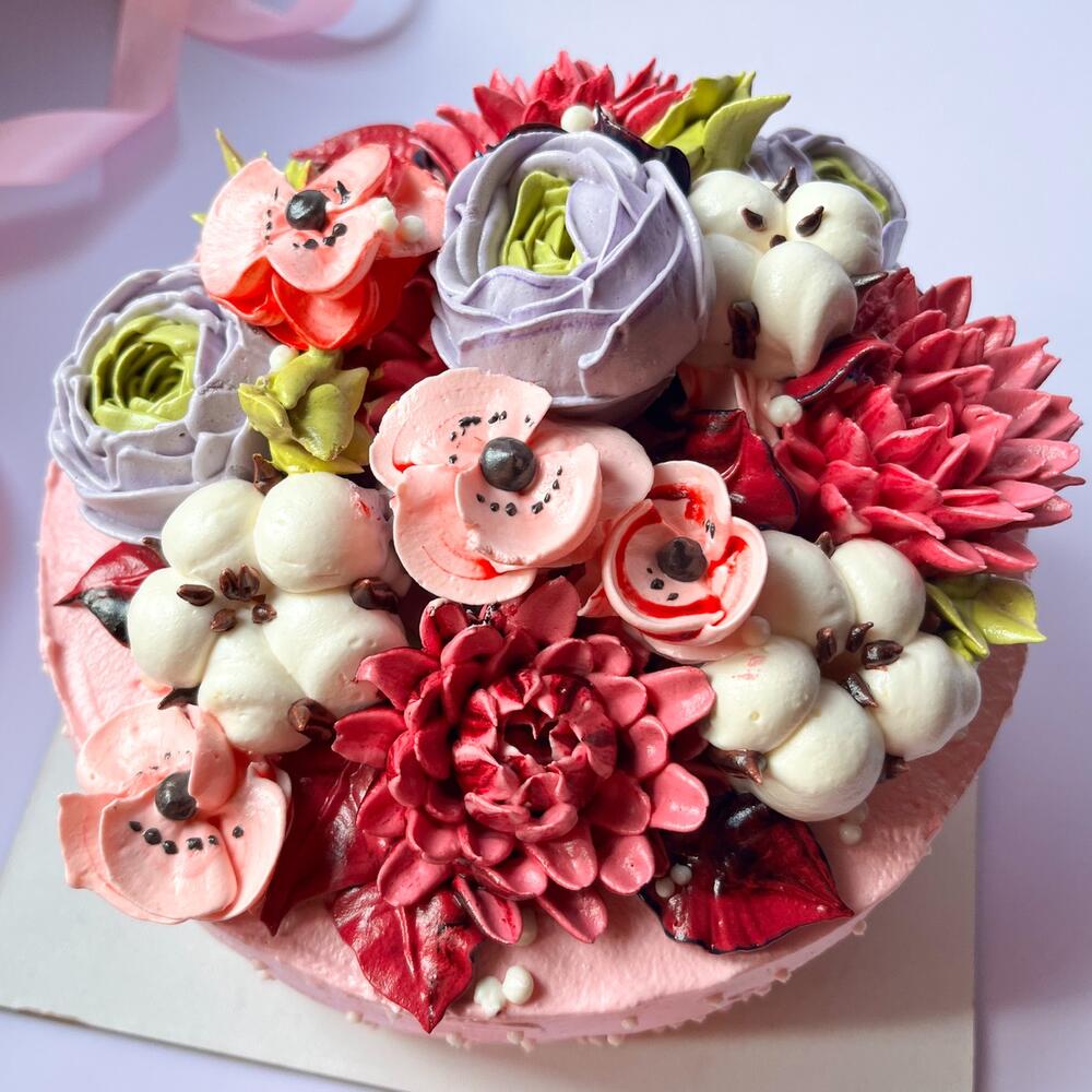Невероятно красивый торт с цветами! Нежный белковый крем с ароматом карамели. Шоколадный торт с вишневым конфитюром и классическим крем чизом! Такой торт украсит любой праздник и удивит ваших гостей. Каждый цветок хризантему, рунункулус, хлопок, суккуленты ,анемоны сделан в ручную нагим кондитером и может чуть чуть отличаться от фото. Торт будет отправлен в коробке украшенный бантом, в бумажном пакете. Срок годности торта 3 дня , хранить в холодильнике.