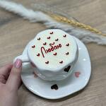 Новый тренд 2025 года! Торт в чайной паре (кружечка+блюдце) ☕️ Это настоящая посуда, не съедобная! Такая идея тортика отлично подойдет в качестве подарка на день рождения или просто без повода! ❤️ Десерт скушают, а кружечка с блюдцем будет радовать ещё долгие годы 🫂 Порадуйте себя и своих близких этим десертом✨ Можем предложить Вам заменить надпись на десерте (надпись должна быть короткой). Пишите нам в чат и мы обсудим все детали!