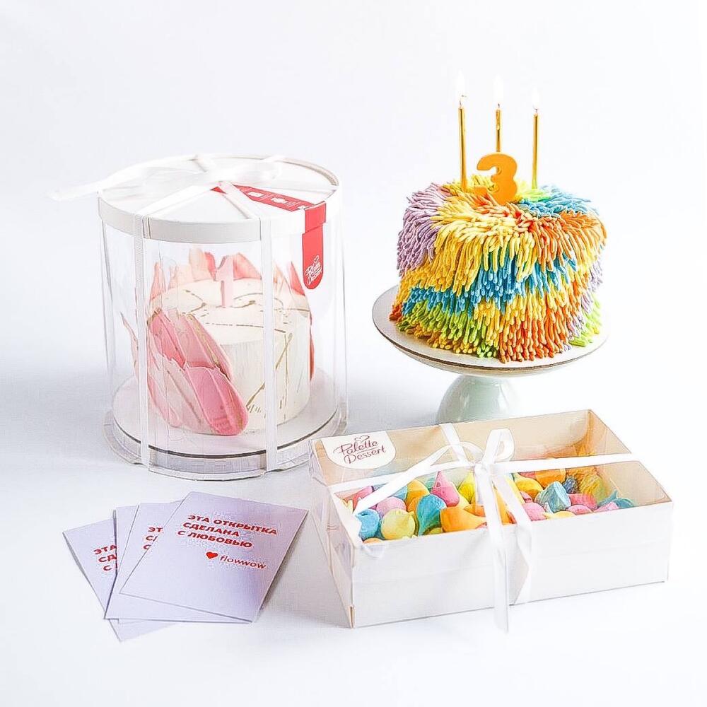 Внутри торта любая начинка на выбор из ассортимента нашей кондитерской: 🍒 Шоколад-пряная вишня 🍓 Клубничный мохито 🥛 Молочный ломтик ⭐ Все торты упаковываем в прозрачные коробки-тубусы. Также можем добавить к заказу свечи, шоколадные цифры и открытку. Продукт полностью готов к употреблению. ⚡ Хранить в холодильнике +2..+5°C