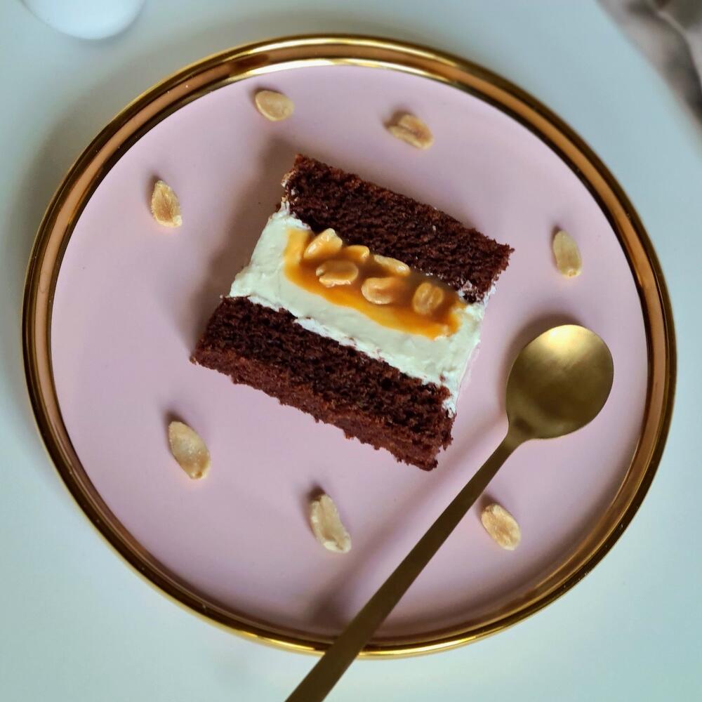 Молоко, яйца, растительное масло, мука пшеничная, сахар, алканизированое какао, разрыхлитель, крахмал кукурузный, творожный сыр, сливки 33%, сахарная пудра, сл масло, шоколад, соленая карамель, арахис.