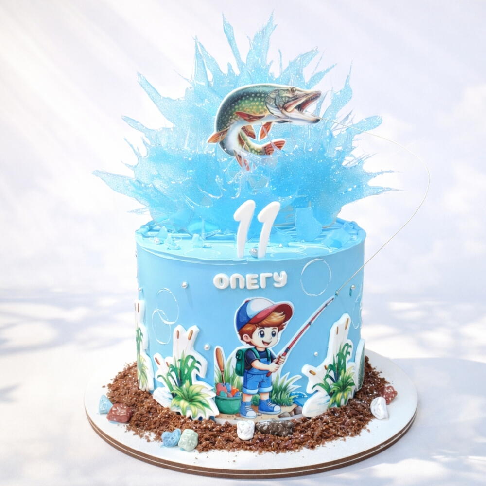 Поймать такую щуку мечтает каждый рыболов😁 а получить безумно красивый тортик на день рождение - каждый ребёнок 😍 В декоре сахарная печать, волны/брызги - леденцы (тоже съедобны, можно похрумкать). Имя и цифру меняем на ваши.