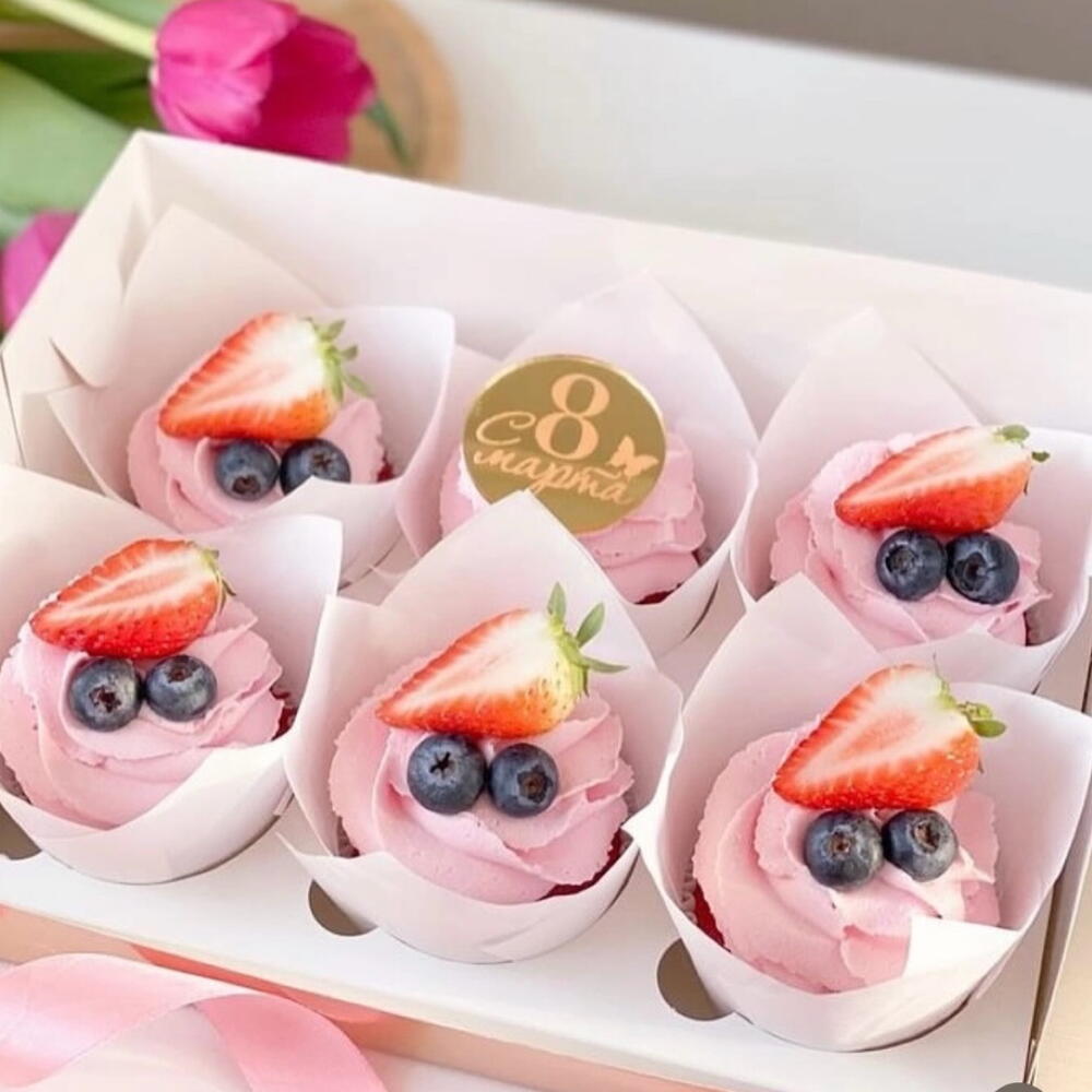 Ванильные капкейки с кремом чиз с ягодами (клубника ,голубика )подарочный набор на 8 марта