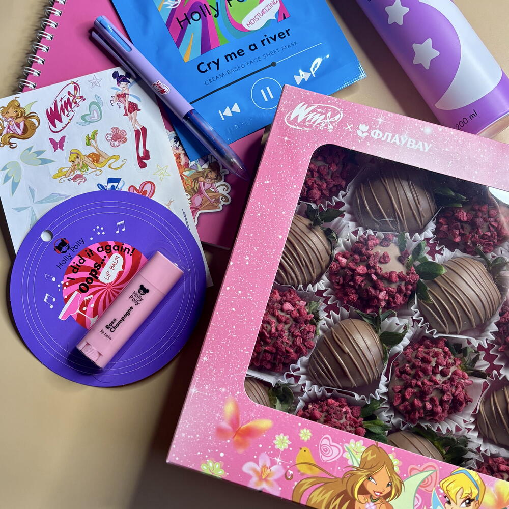 Добавьте в свой день немного волшебства вместе с Winx Club. Сочная клубника в нежном шоколаде — яркий, эффектный и запоминающийся подарок. А при заказе вас также ждёт подарок — набор от Winx Club для отличного настроения: блокнот, ручка, наклейки и косметика Holly Polly, которая помогает каждой фее заботиться о себе Дарите красиво 🌸