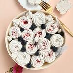 Отличный подарок для ценителей всего самого натурального! Зефир приготовлен по авторскому рецепту, с пониженным содержанием сахара. Набор украшен мини зефиринками и свежей голубикой. Возможные вкусы: малина, яблоко, апельсин, клубника Срок хранения зефира 14 дней. Зефир упакован в белую подарочную коробку, атласная лента и крафт пакет с лентой.