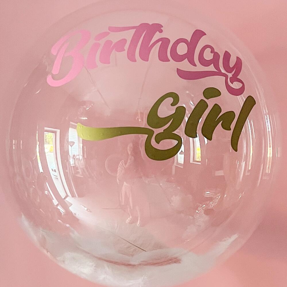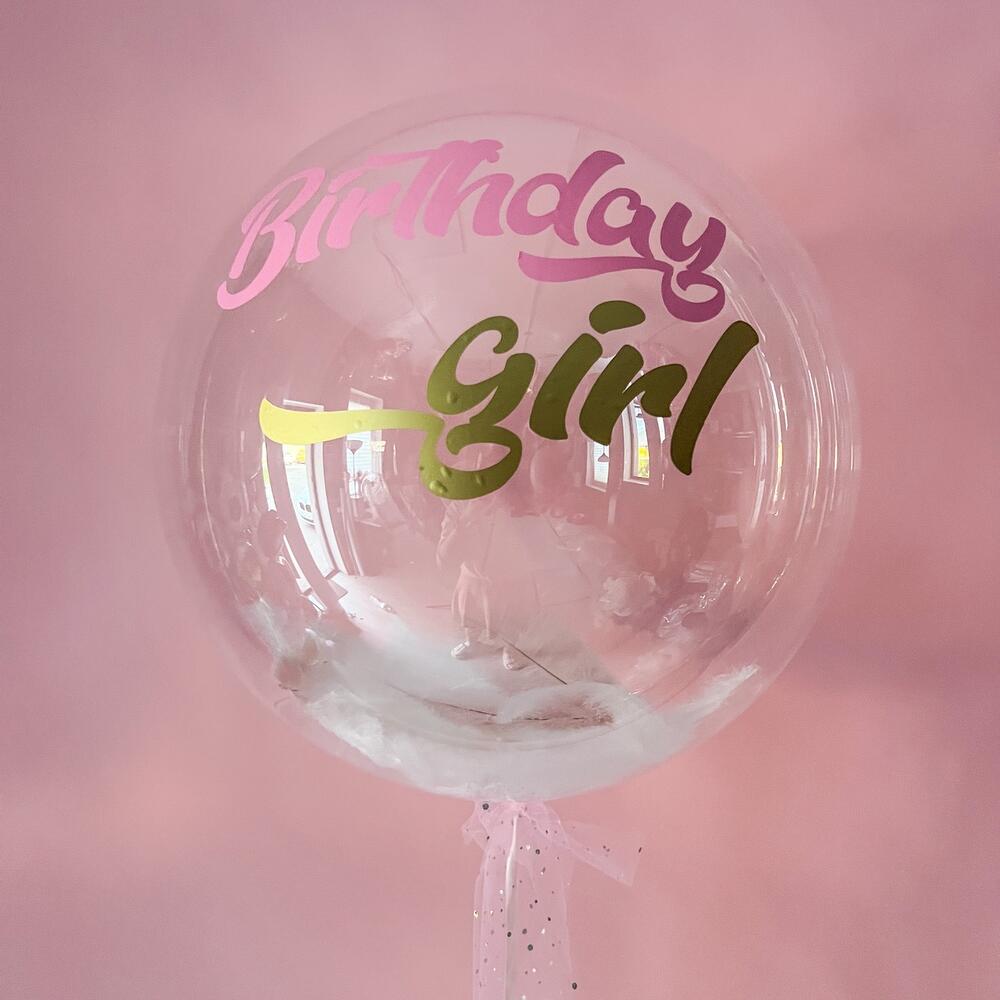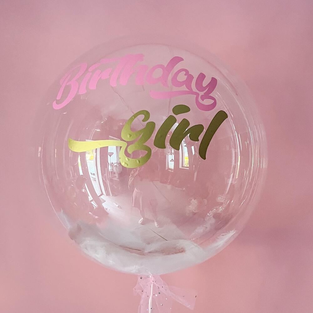 Размер большого шарика с перьями - 60 см Вы можете выбрать любую другую надпись! Такой шар можно подарить на День Рождения или на выписку! В стоимость включен транспортировочный пакет и утяжелитель.