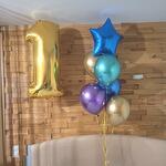 Цифра фольгированная и фонтан из шаров хром и звезда фольгированная
