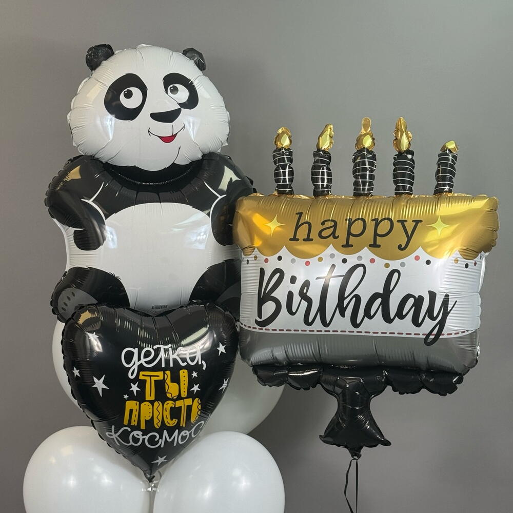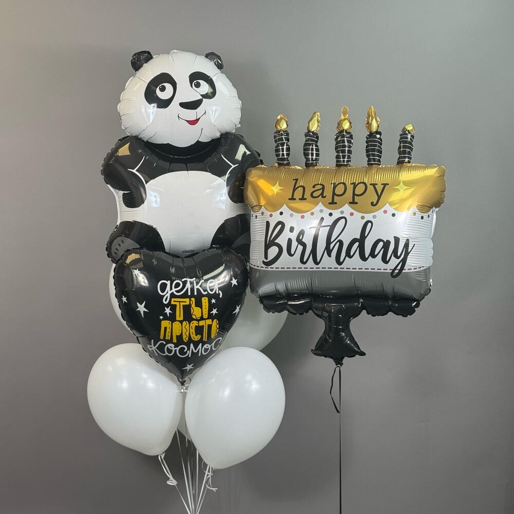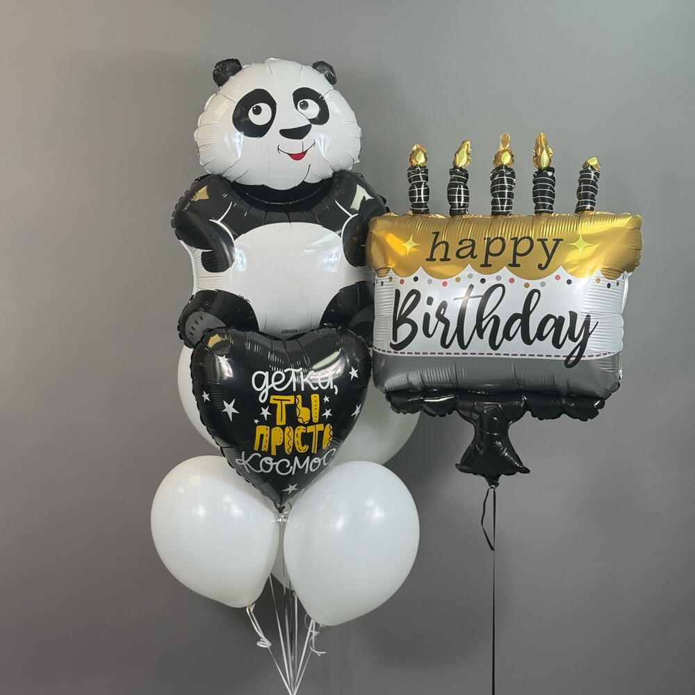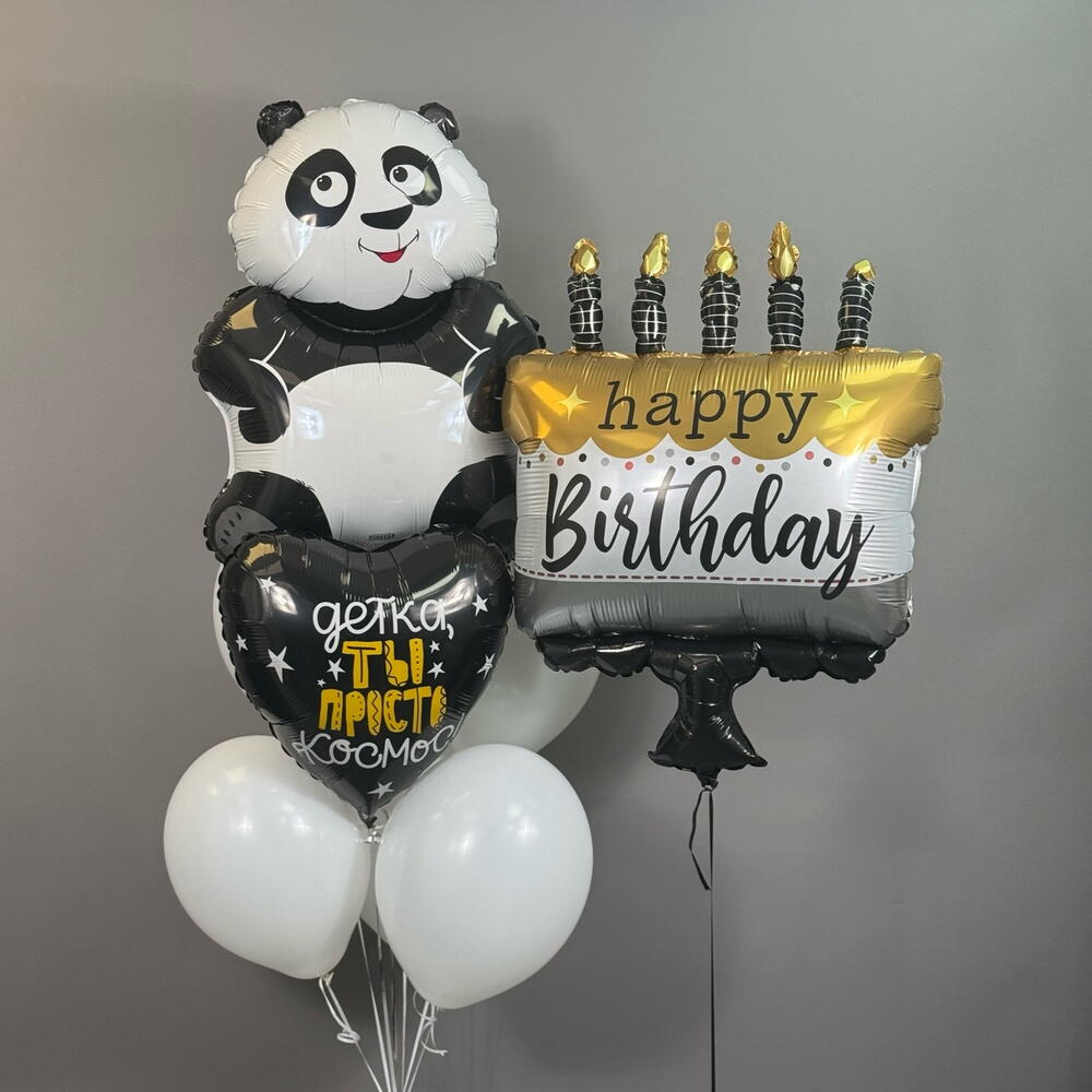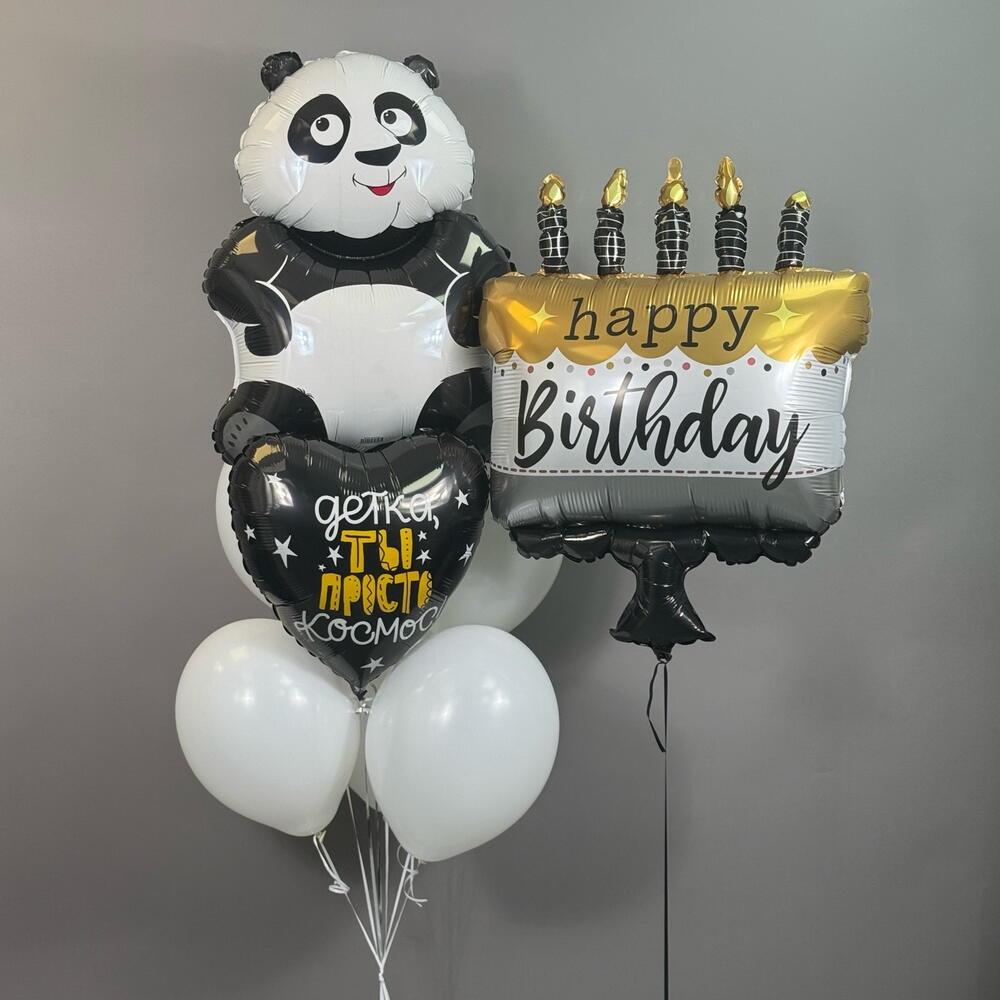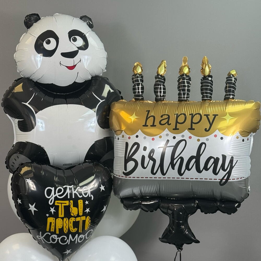 Воздушные шары на день рождения Воздушные шары латексные белые 4 шт Сердце с надписью 1 шт Панда 1 шт Торт с надписью 1 шт