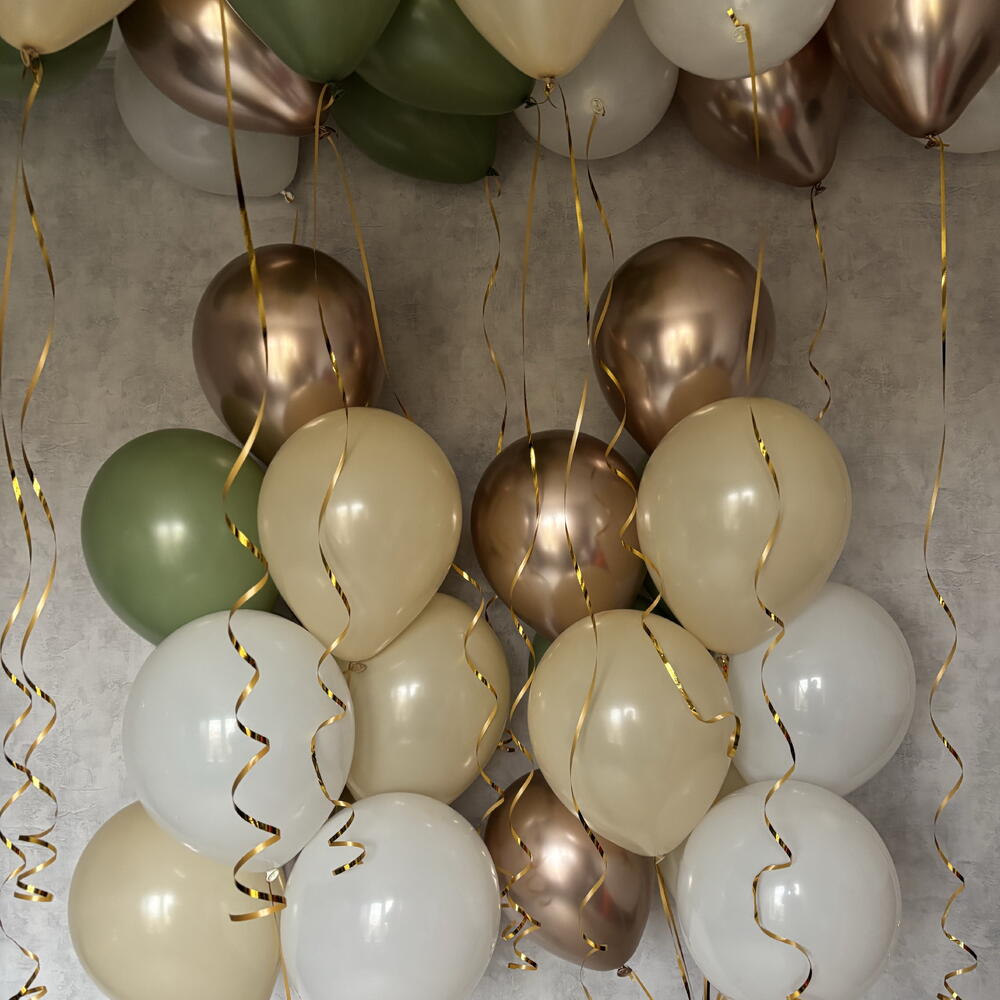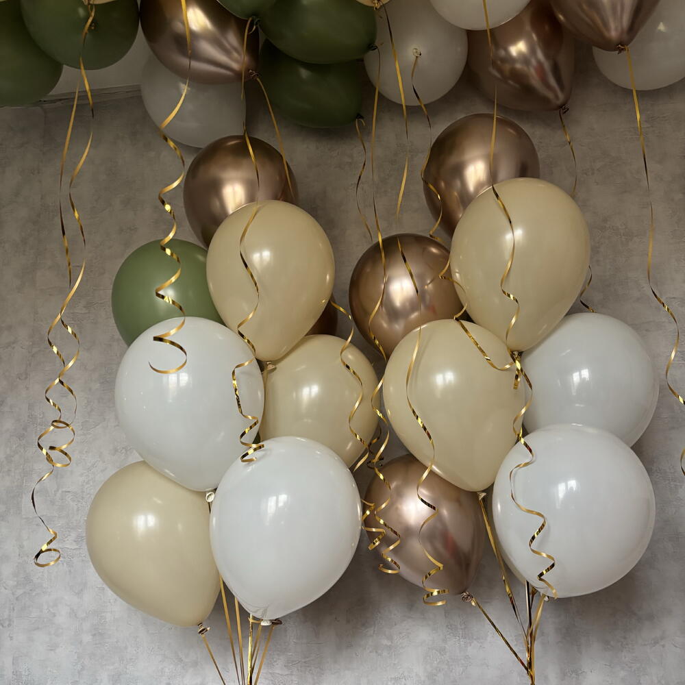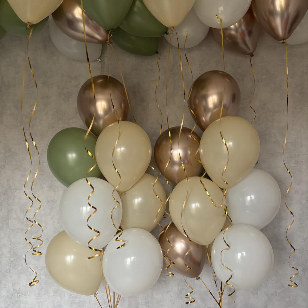 - Две связки по 10 шариков ( бежевые, белые, шампань, эвкалипт ) - 15 шариков под потолок в этой же цветовой гамме