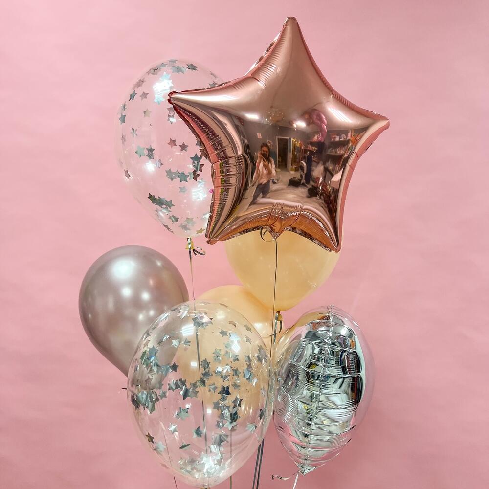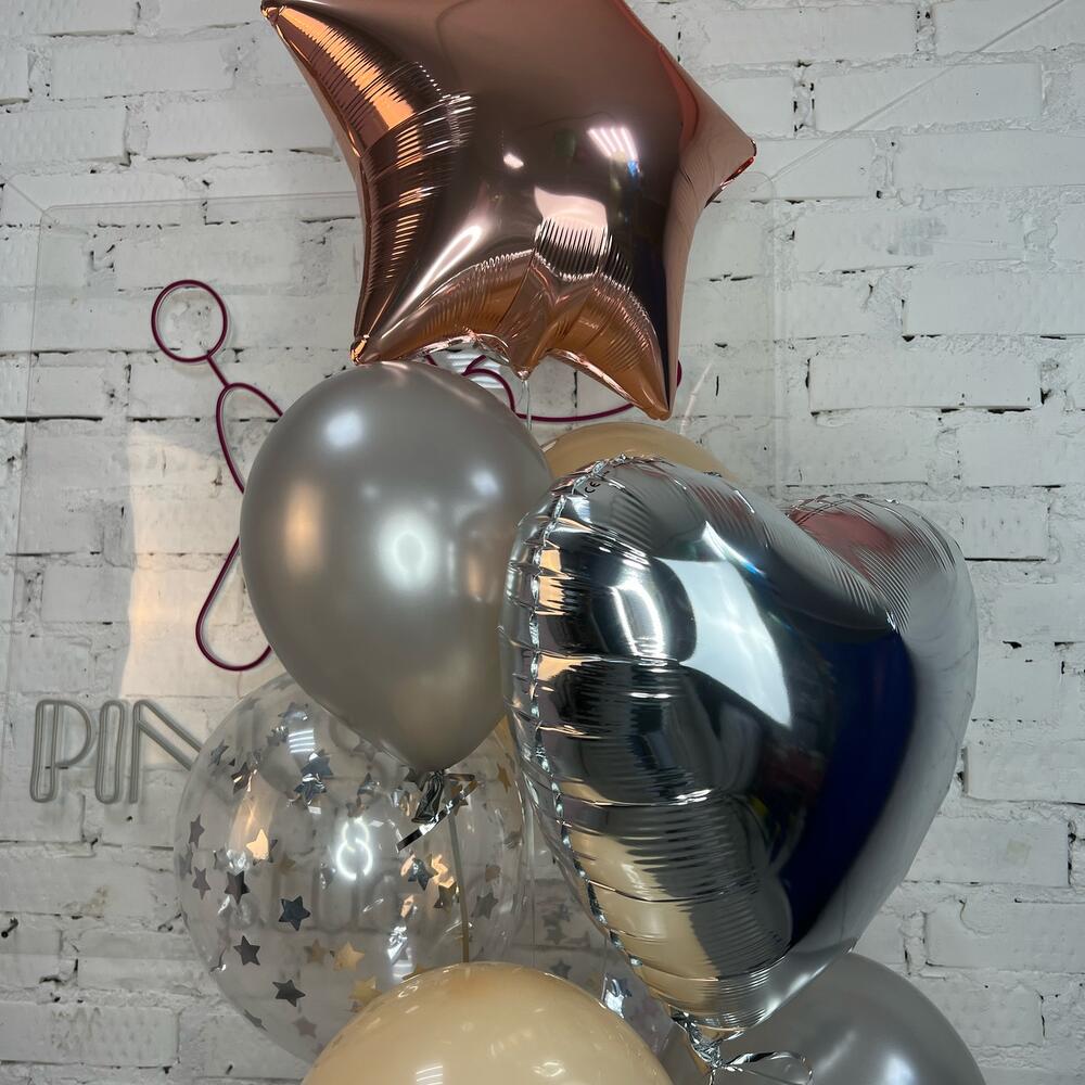 Состав набора: 5 латексных шариков (30 см), фольгированное сердце (46 см), фольгированная звезда (46 см). Классный мини-фонтан, который может подарить своим близким и порадовать их! На звездочку надпись в подарок! Просто укажите в комментариях, что хотели бы написать Все шары обработаны специальным составом для продления полета В стоимость включен транспортировочный пакет и утяжелитель.
