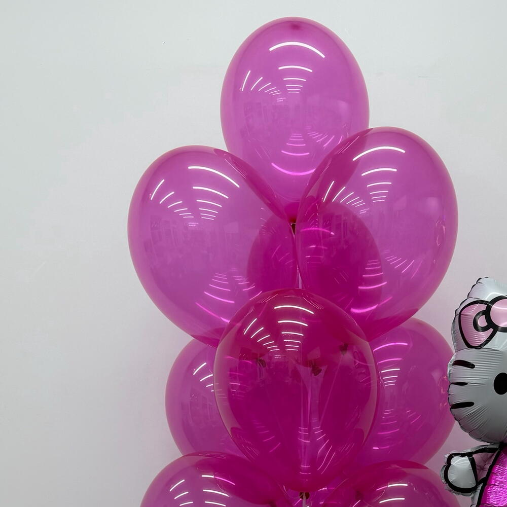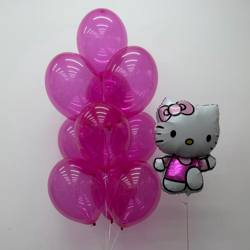 Состав сета: - фольгированная фигура «Кошечка» -1 шт Фонтан из 10 шаров: - латексный шар 35 см фуше кристалл - 10 шт