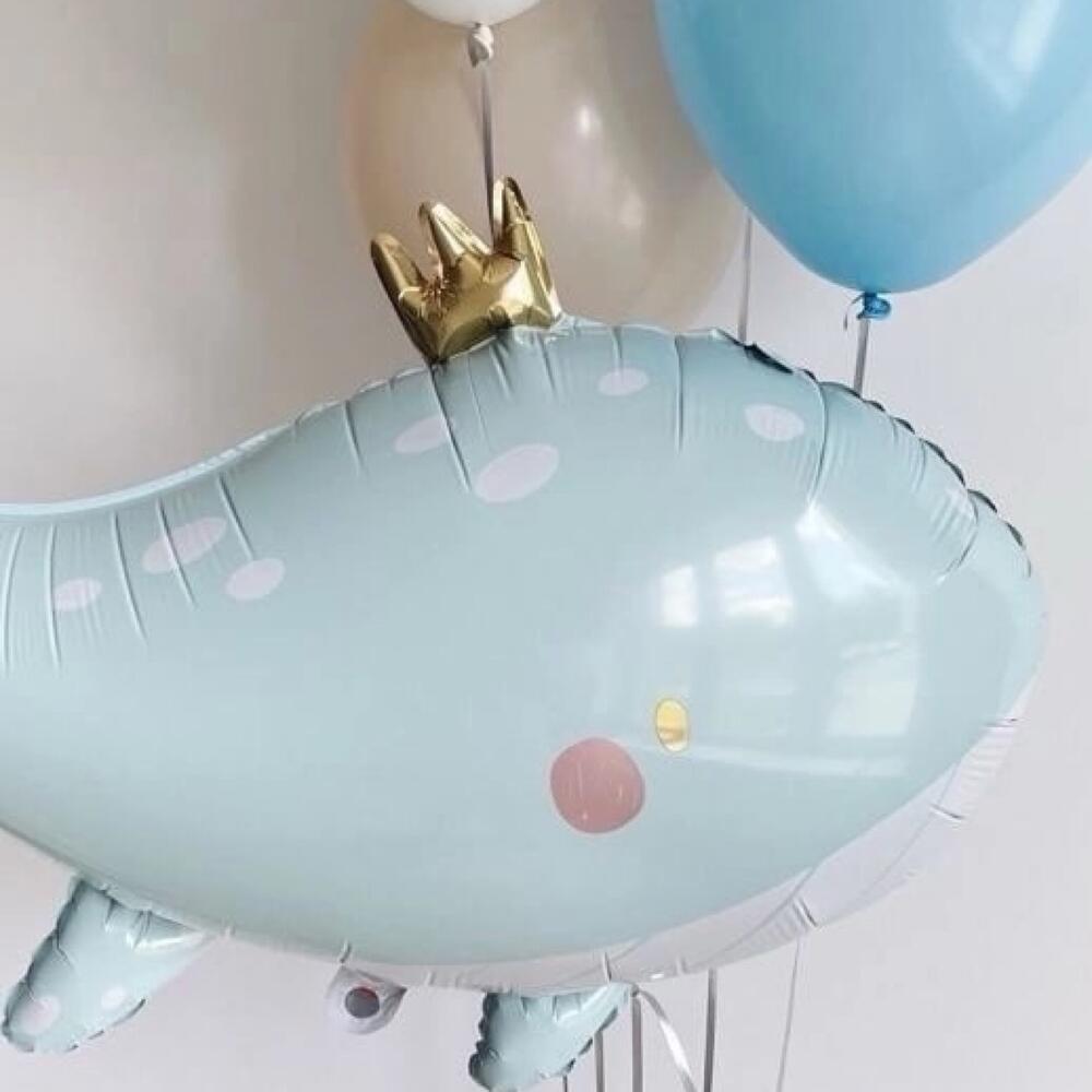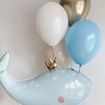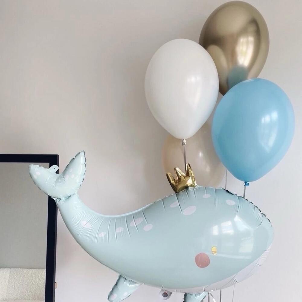Композиция «Царь-кит» Латексные шары 4шт Фигура фольгированная 1шт Грузик 2шт Пакет упаковочный 1шт Важно! Все шары обрабатываются гелем для продолжительности полёта.