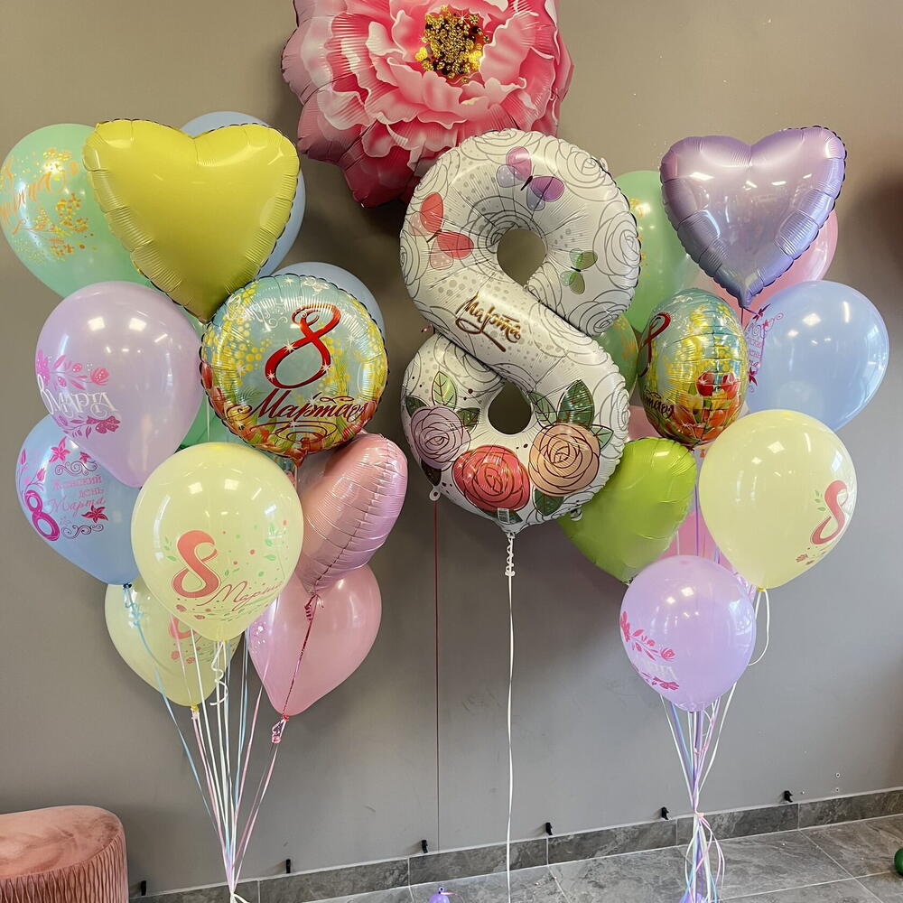 2 тематических фонтана по 13 шаров. Цифра фольгированная 102 см - 1 шт. Шар роза 91 см - 1 шт.