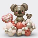 Ширина 80 см Высота 1 м. В состав входят: 1 фольгированная фигура Коала 78 см 1 фольгированная мини-фигура Коала 30 см 1 фольгированное сердце Любимая мама 46 см Цветовая гамма: пудрово-розовый пастель, розовый макаронс, белый пастель и хром серебро.