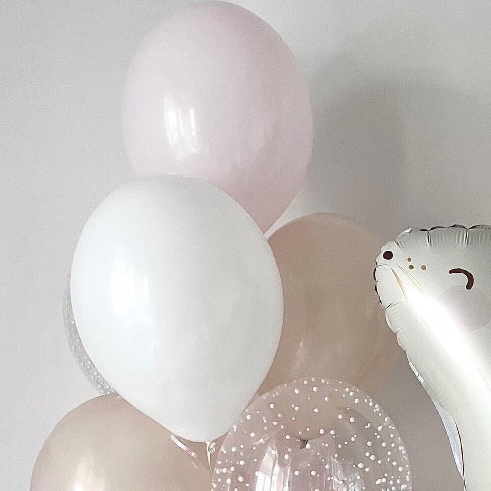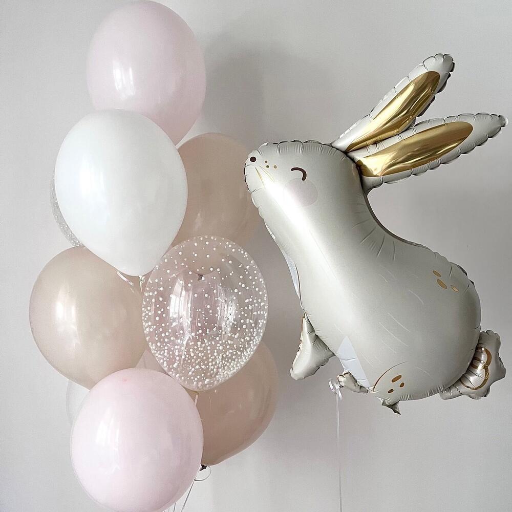 Композиция «Зефирный зайка» Латексные шары 8шт Шар с конфетти 2шт Фигура фольгированная 1шт Грузик 2шт Пакет упаковочный 1шт Важно! Все шары обрабатываются гелем для продолжительности полёта.