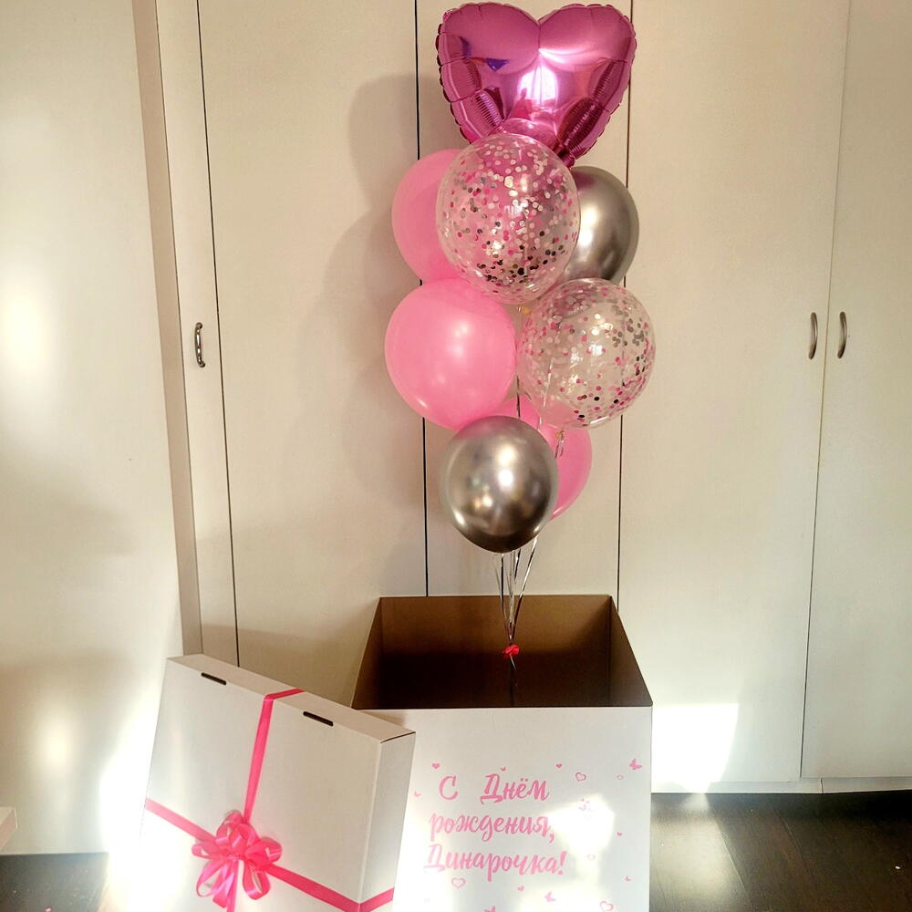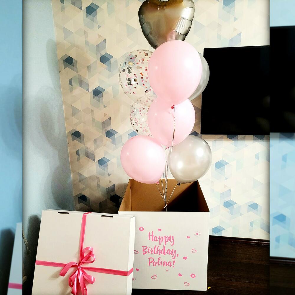 Коробка + 8 шаров. Надпись любая. Цветовую гамму можн опоменять