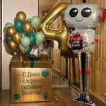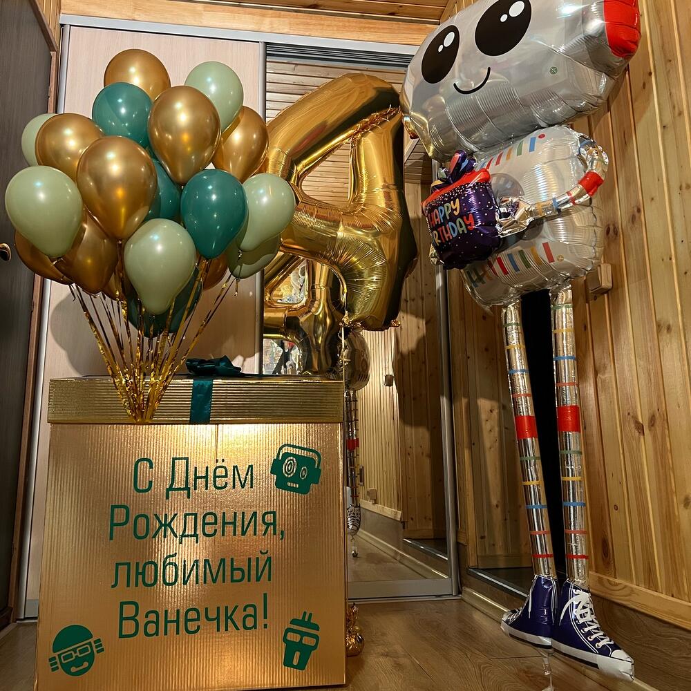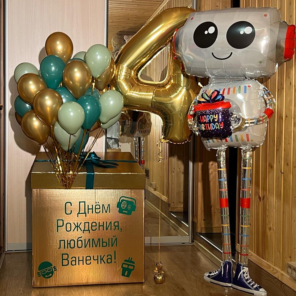 Коробка-сюрприз 70/70 + 35 мини-Шаров + цифра 102 см. + робот - ходячка с гелием