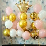 Шикарный огромный набор! 3 фонтана по 9 шаров корона фольгированная - 1 шт. Воздушные шары дарят ощущение легкости и беззаботности, приносят счастье и восторг! Композиция подарит радость и прекрасное настроение, поможет ощутить лёгкость и счастье =) Украсим праздник воздушной сказкой и яркими красками.