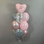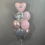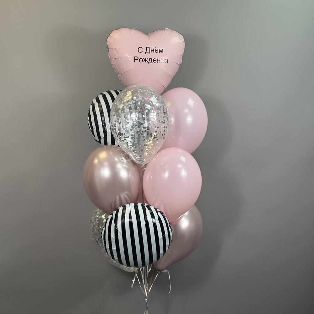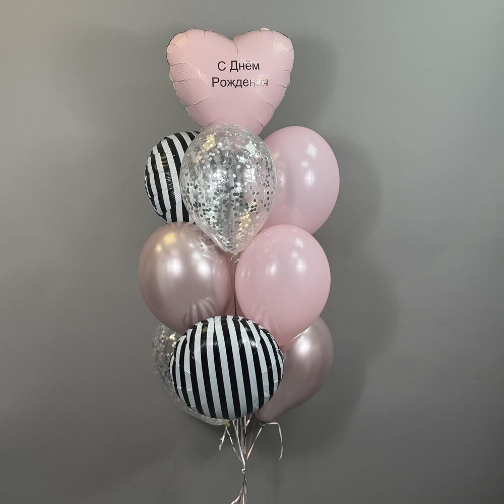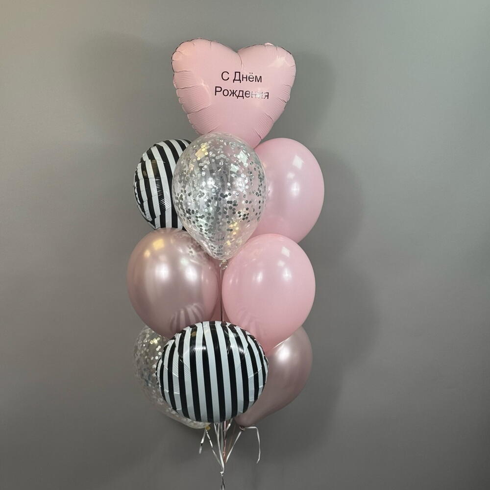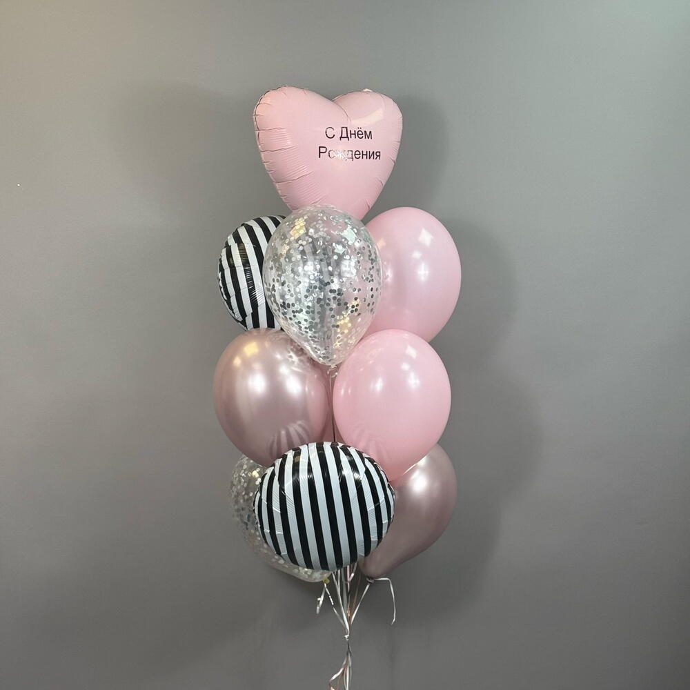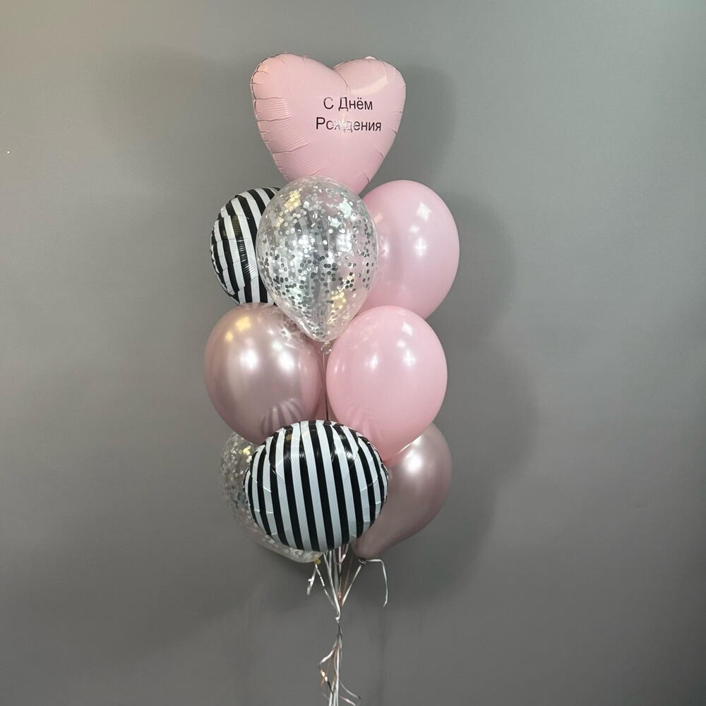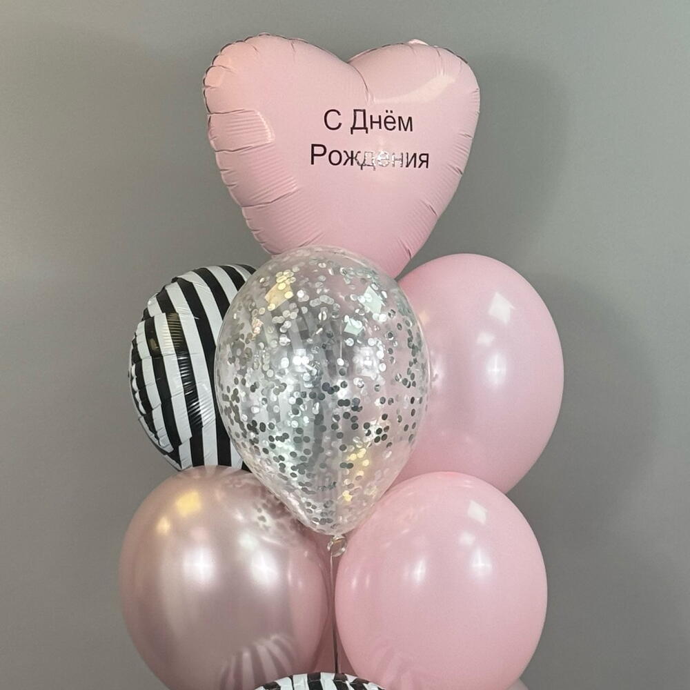 Воздушные шары на день рождения девушке , девочке , подруге , розовые , круги зебра , сердце с индивидуальной надписью