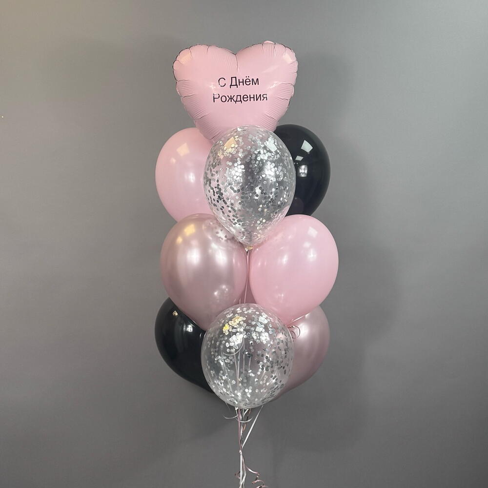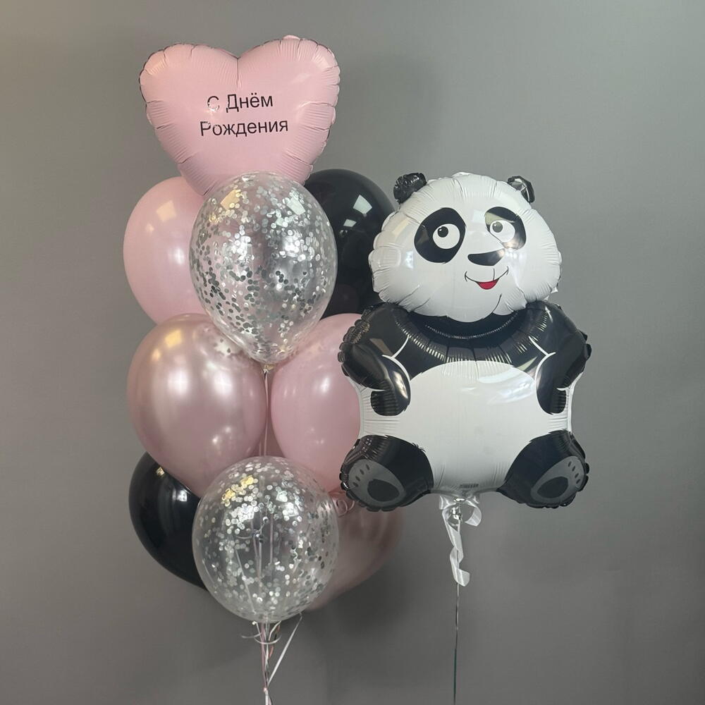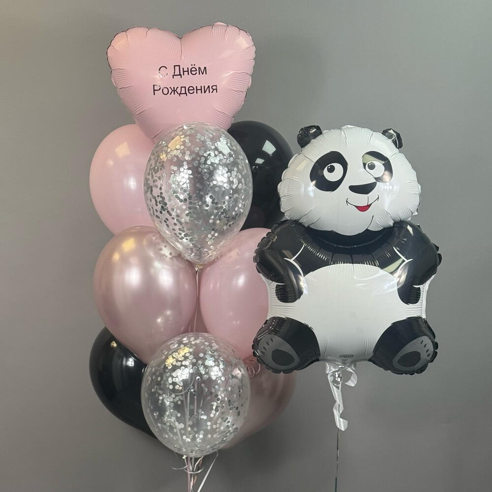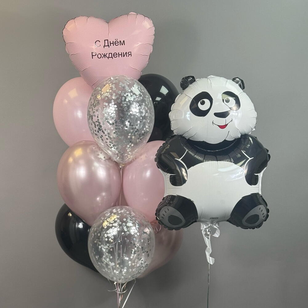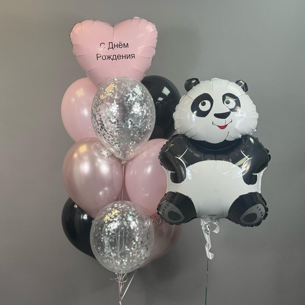Воздушные шары на рождения девушке , девочке , розовые , черные , шары с конфетти , сердце с индивидуальной надписью, панда