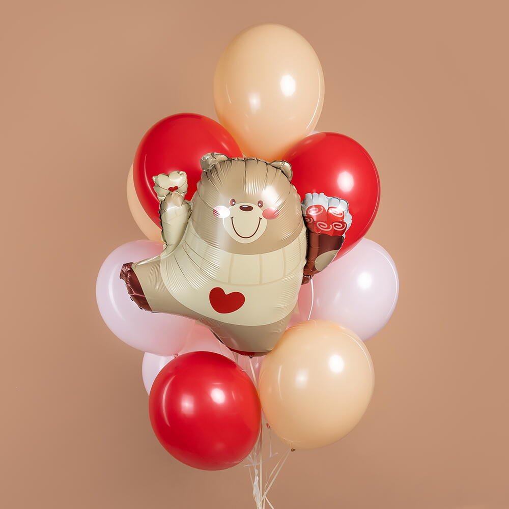 Мишка фольгированный с валентинкой + 10 шаров день влюбленных