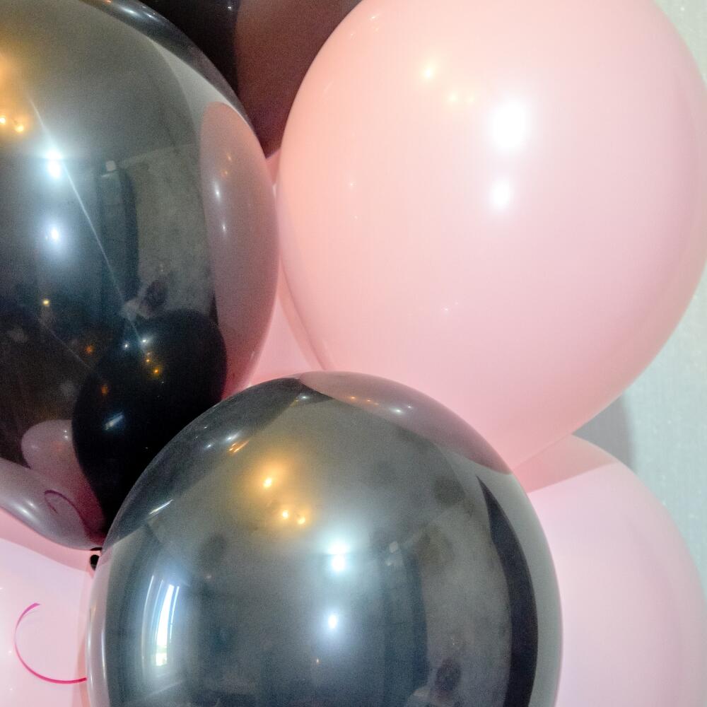 Состав 7 латексных шаров, цвет : нежно розовый, размер 12"35 см 6 латексных шаров, цвет :чёрный, размер 12"/35 см