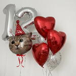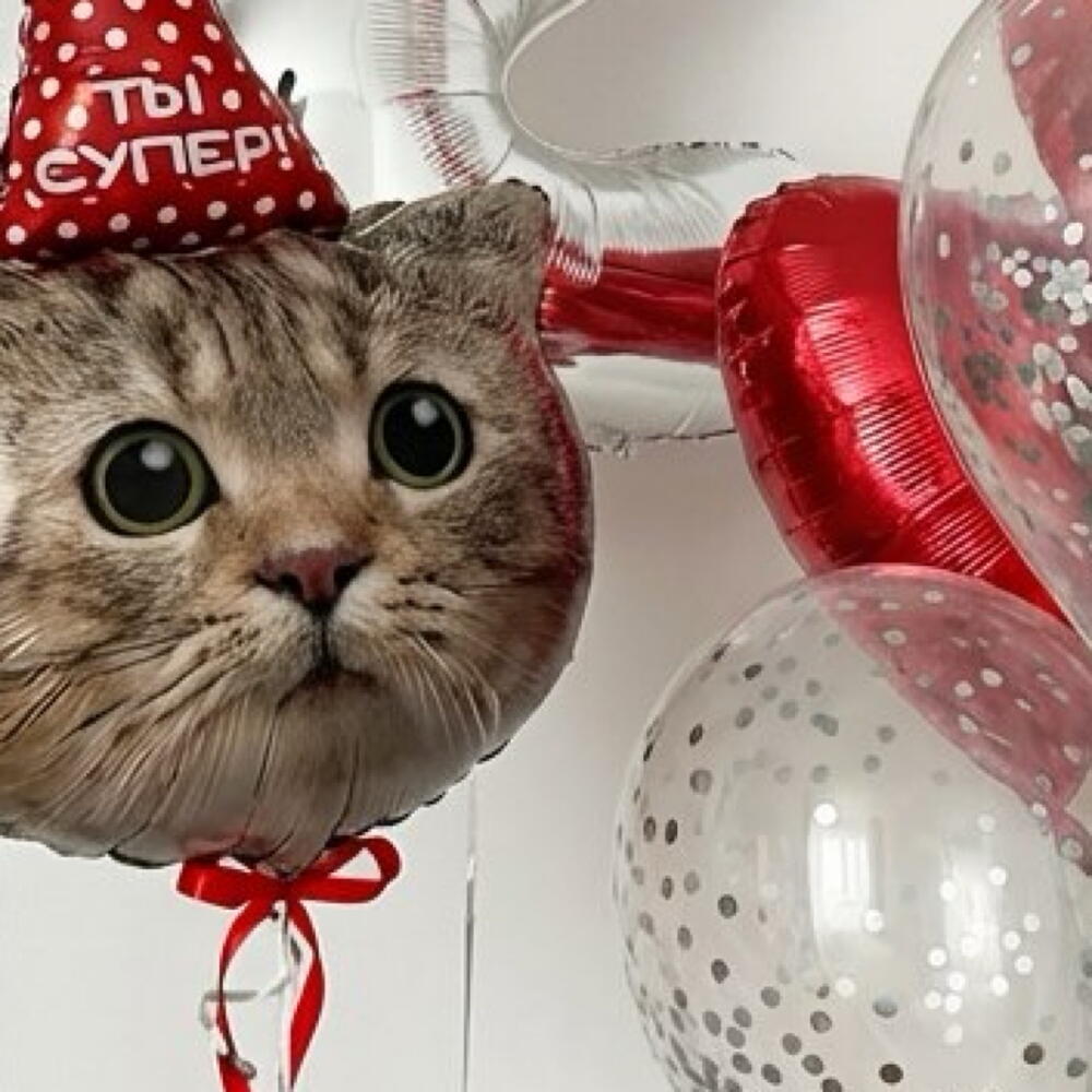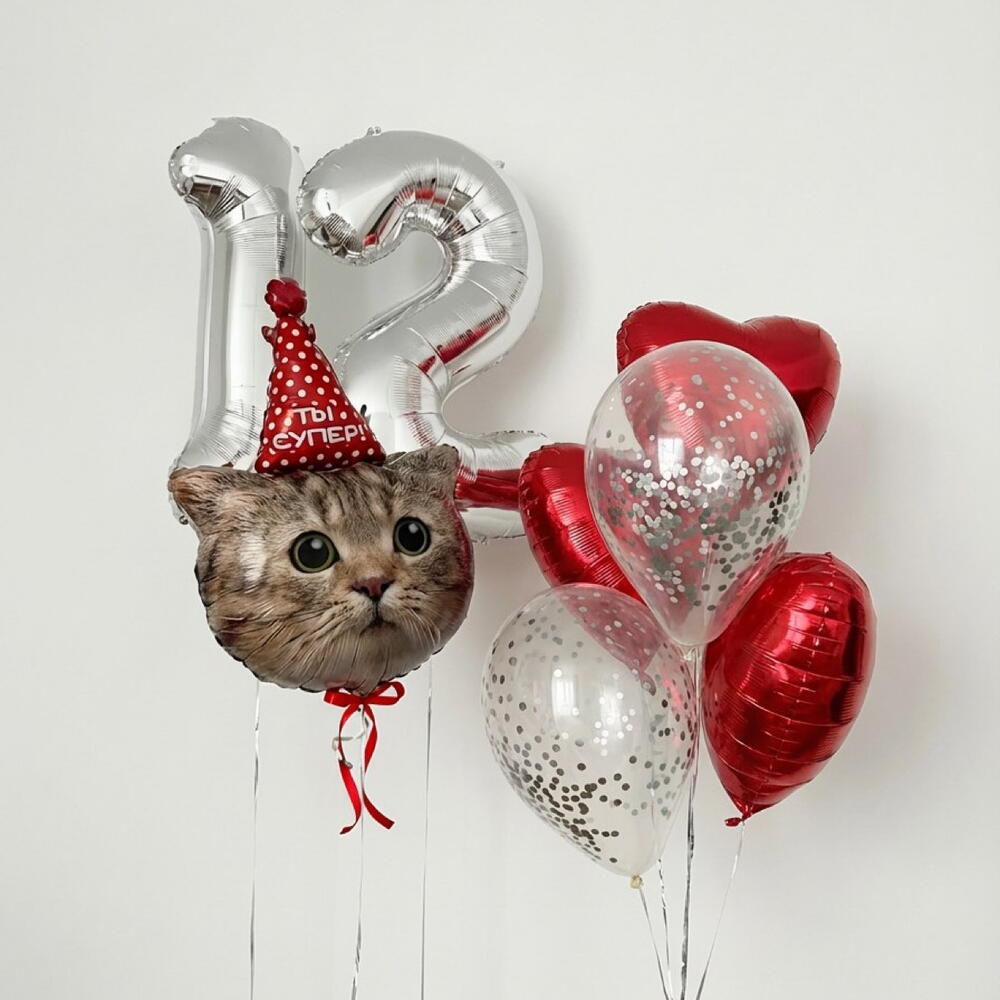 Набор шаров на день рождения. Любые цифры (если вам нужна 1 цифра, можем добавить 2 шарика с конфетти например) Котик в колпаке «ты супер» с бантиком. Фонтан из 3 фольгированных сердечка и 2 прозрачных шариков с конфетти. Вы можете оставить комментарий с дополнительными пожеланиями и мы с радостью вам поможем.