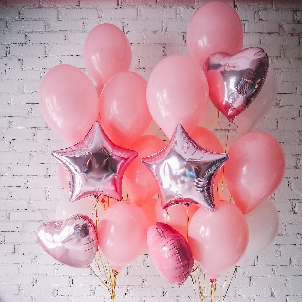 Состав набора: 20 латексных шариков (размер 30 см), 2 фольгированных звезды (46 см), 3 фольгированных сердца (46 см). Идеально подойдет на выписку или на день рождения девочки, девушки, женщины! Все шары обработаны специальным составом для продления полета В стоимость включен транспортировочный пакет и утяжелитель.