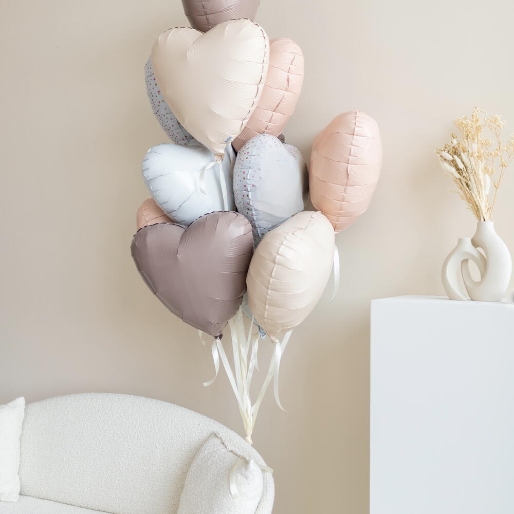 В наборе 12 фольгированных сердец 46см Все шары собраны в связку и прикреплены на грузик, их можно отпустить под потолок при желании. Все шары европейских производителей и обработаны жидким пластиком для долгого полёта. Доставляются в транспортировочных пакетах. Если вы бы хотели изменить что-то в наборе или добавить надпись на фольгированный напишите нам. мы с радостью ответим на все вопросы