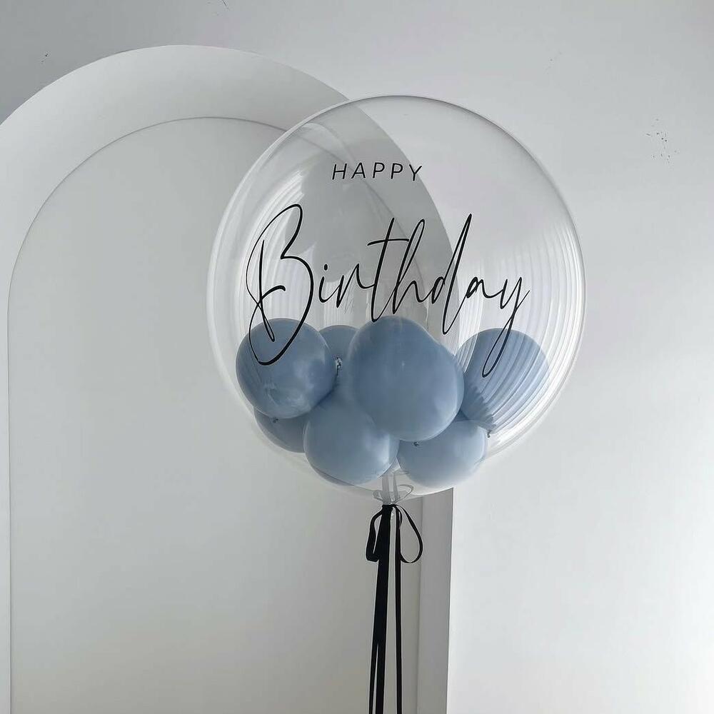 Прозрачный шар на день рождения мужчине или мальчику с индивидуальной надписью и шариками внутри