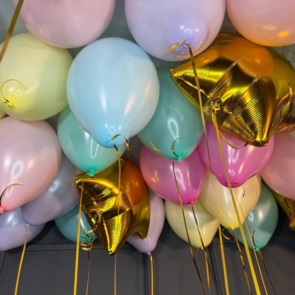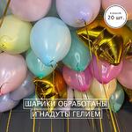 Разноцветные нежные шарики макарунс с золотыми звездами 20 шт