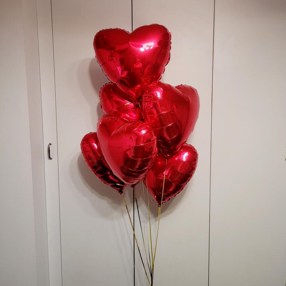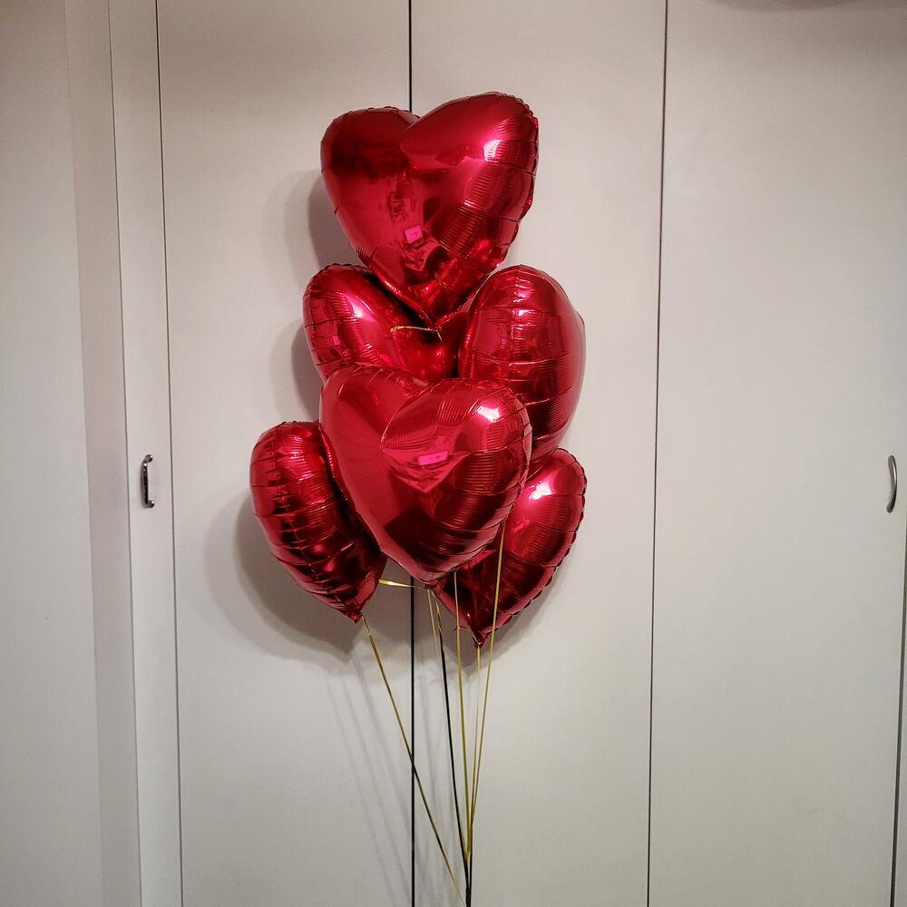 Сердца красные 7 штук. Фольгированные сердца 45 см