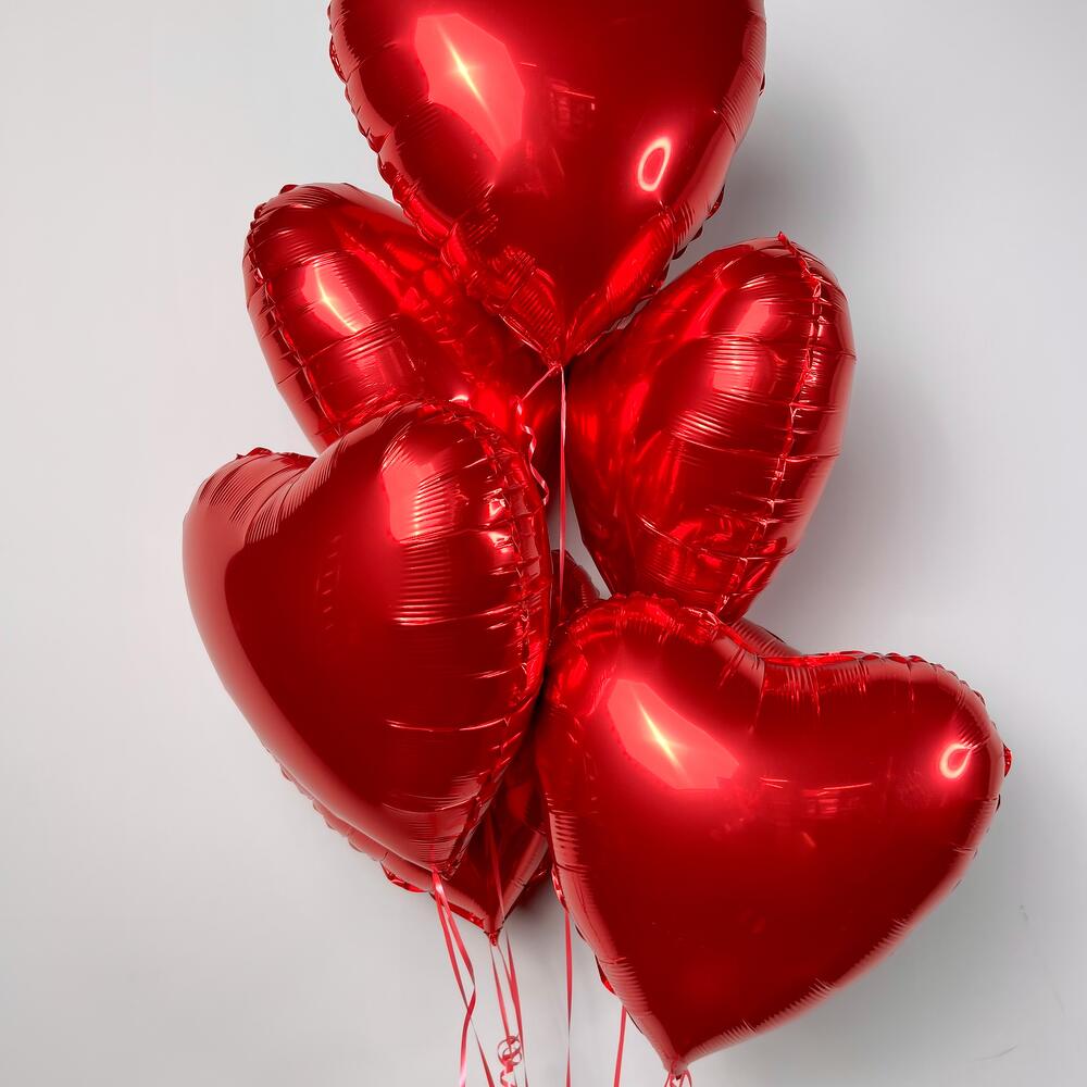 Охапка из семи фольгированных сердец на связке с утяжелителем станет прекрасным признанием в любви и украшением любого праздника.