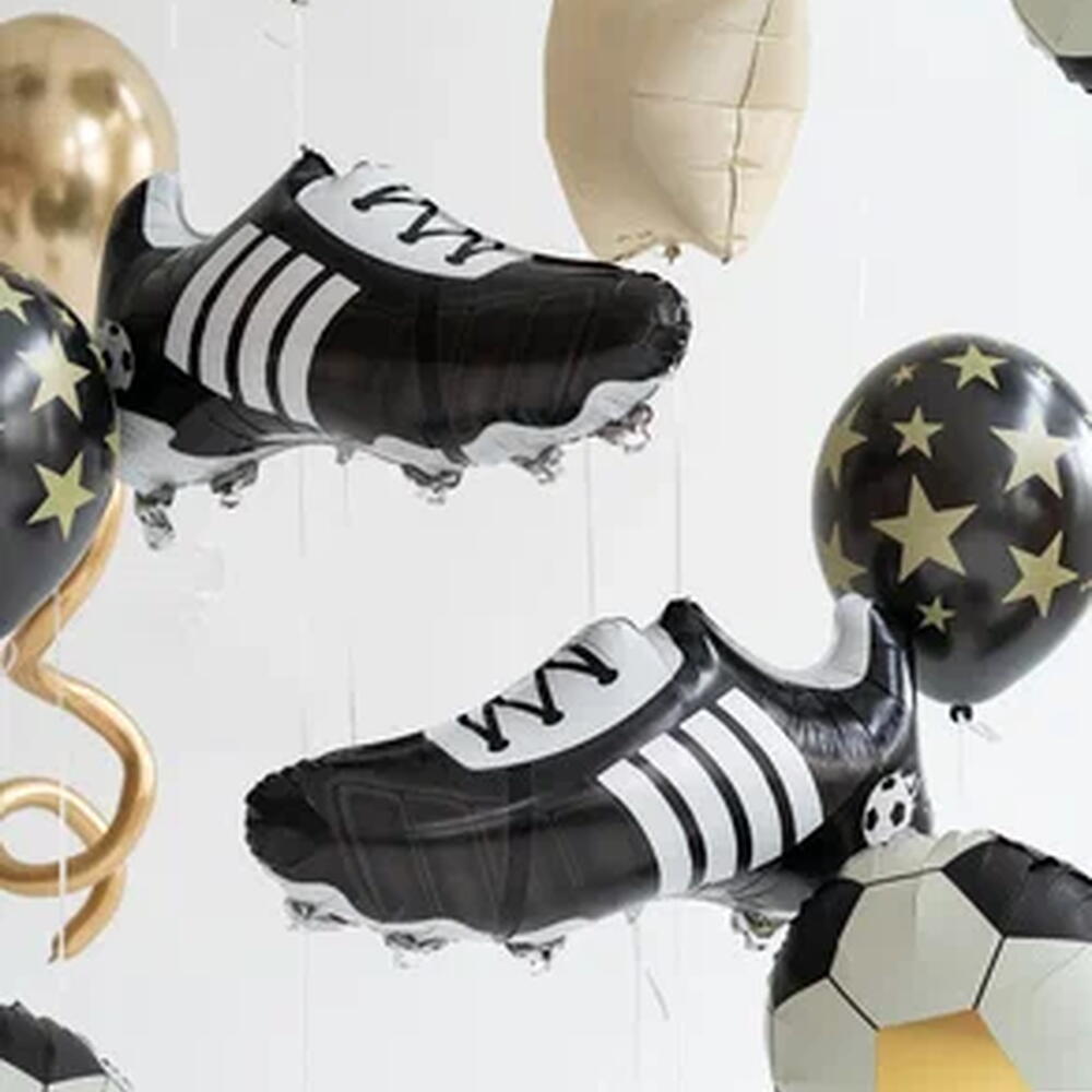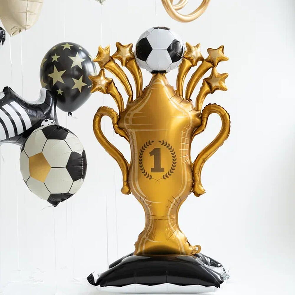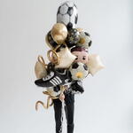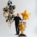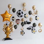 Этот яркий и стильный набор воздушных шаров станет идеальным украшением для дня рождения юного футболиста, тематической вечеринки или любого другого события, посвященного этой захватывающей игре. Подарите незабываемые эмоции и создайте атмосферу победы! В состав сета входят: 6 стандартных шаров Хром золото с хвостиками из ШДМ Хром золото 4 стандартных черных шара со звездами 5 средних круглых шаров в виде футбольных мячей (18 дюймов) 3 средних звезды из сатина кремового цвета (18 дюймов) Большая звезда янтарь бохо (с надписью) Фольгированная надпись 2 фольгированных кеда Фольгированный футболист Большой фольгированный круг в виде футбольного мяча Большой фольгированный кубок, наполненный воздухом