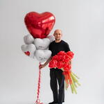 Сет гелиевых шаров Любовь с букетом цветов красных роз