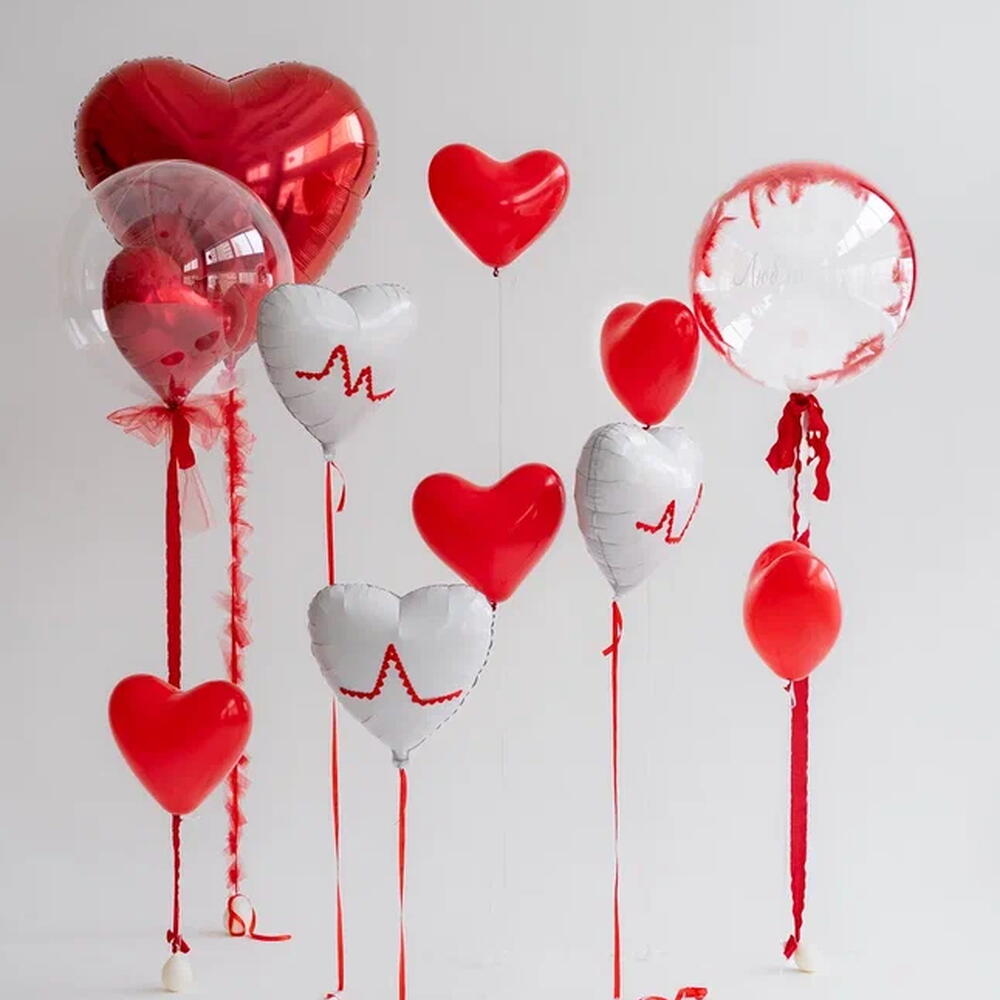 Сет воздушных шаров «От всего сердца»: симфония любви в воздухе Перед вами — изысканная композиция, которая воплощает самые тёплые и искренние чувства. Этот сет из воздушных шаров словно создан для того, чтобы рассказать о любви без слов, наполнить пространство нежностью и радостью. В центре внимания — воздушные шары в форме сердец, выполненные в насыщенных красных и элегантных серебристых оттенках. Красные шары символизируют пылкость и страсть, а серебристые с изящным рисунком линии пульса — трепетное биение влюблённого сердца. Их глянцевая поверхность отражает свет, создавая ощущение волшебства и лёгкости. Особого очарования композиции добавляют прозрачные шары-бабл с алыми акцентами внутри. Они напоминают хрустальные сосуды, хранящие в себе частичку любви. Лёгкие красные ленточки, изящно обвивающие шары, завершают образ, придавая ему динамику и завершённость. Эта воздушная композиция идеально подойдёт для: романтического признания в любви; украшения зала ко Дню святого Валентина; создания трогательной фотозоны для влюблённых; подарка любимому человеку на годовщину или просто без повода — чтобы напомнить о своих чувствах; оформления праздничного пространства для свадьбы или помолвки. Отдельно на грузиках: - большое сердце красное (агура) - лента фатин под сердце - 5 средних Сердец латекс 18’’ металлик руби ред - 3 средних сердечка с рисунком - баблс с сердцем внутри и бантиком - баблс с перьями внутри на тканевой ленте и надписью Я люблю тебя 11 грузиков Позвольте этим шарам стать воплощением ваших эмоций, наполнить атмосферу теплом и создать незабываемую картину любви!