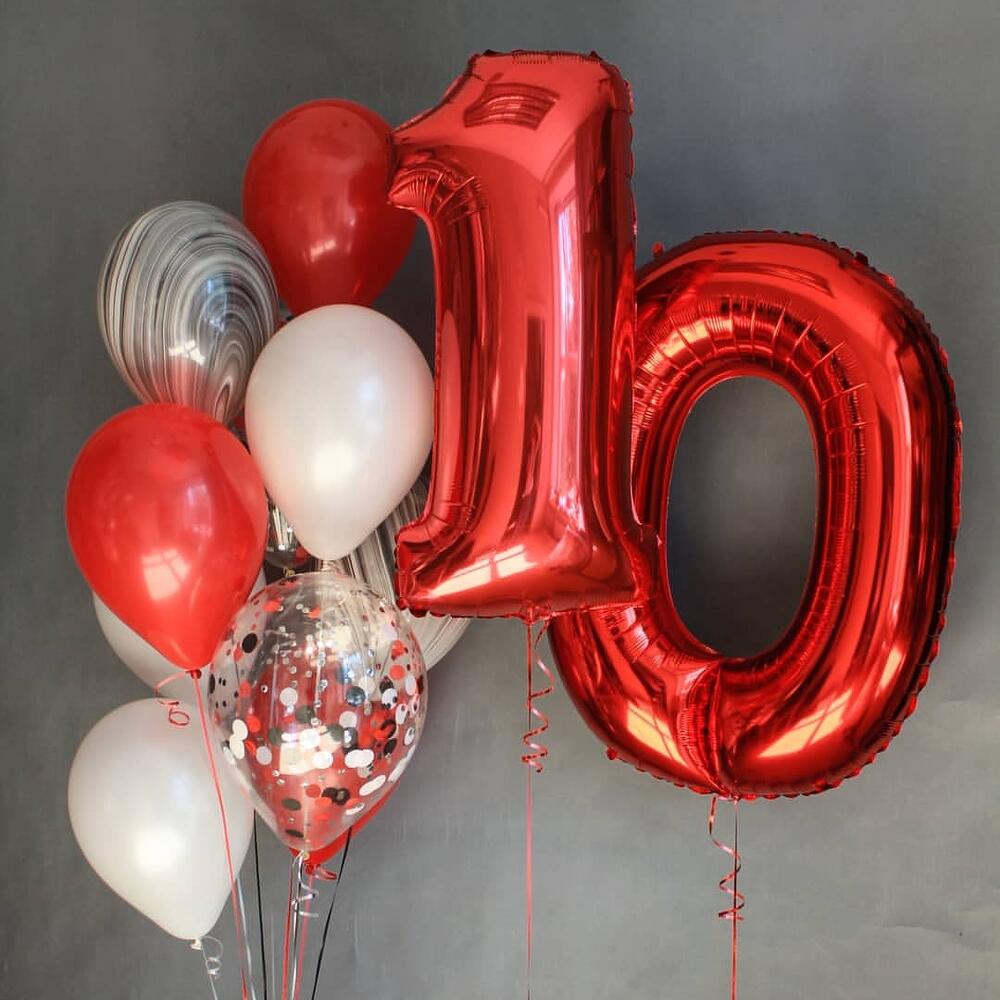 Сет из шаров с цифрами 10 красные