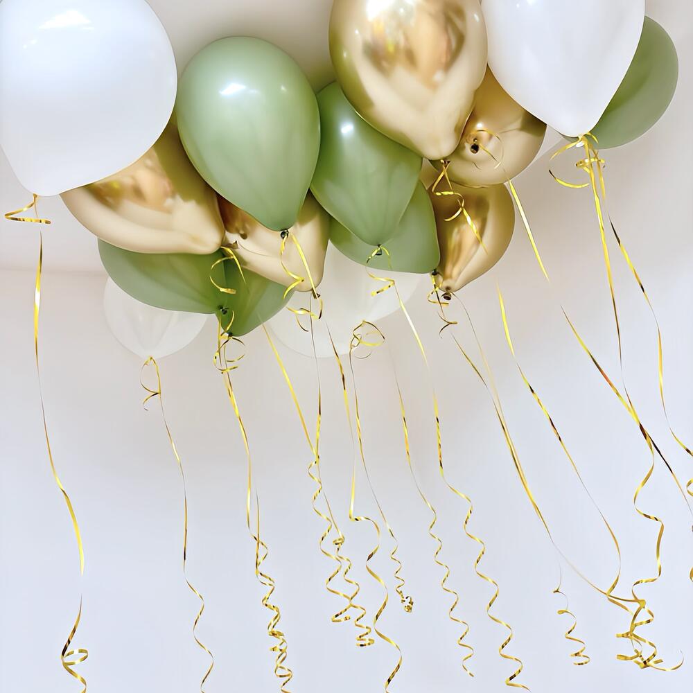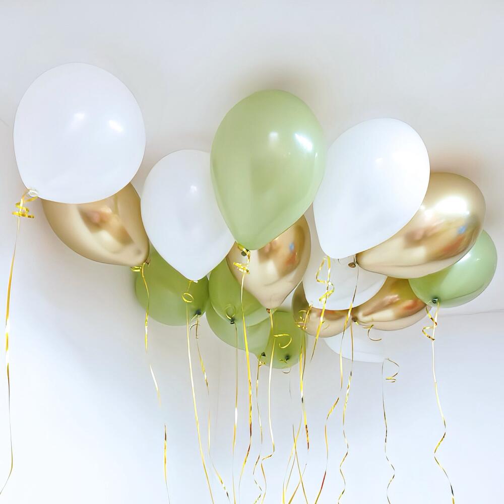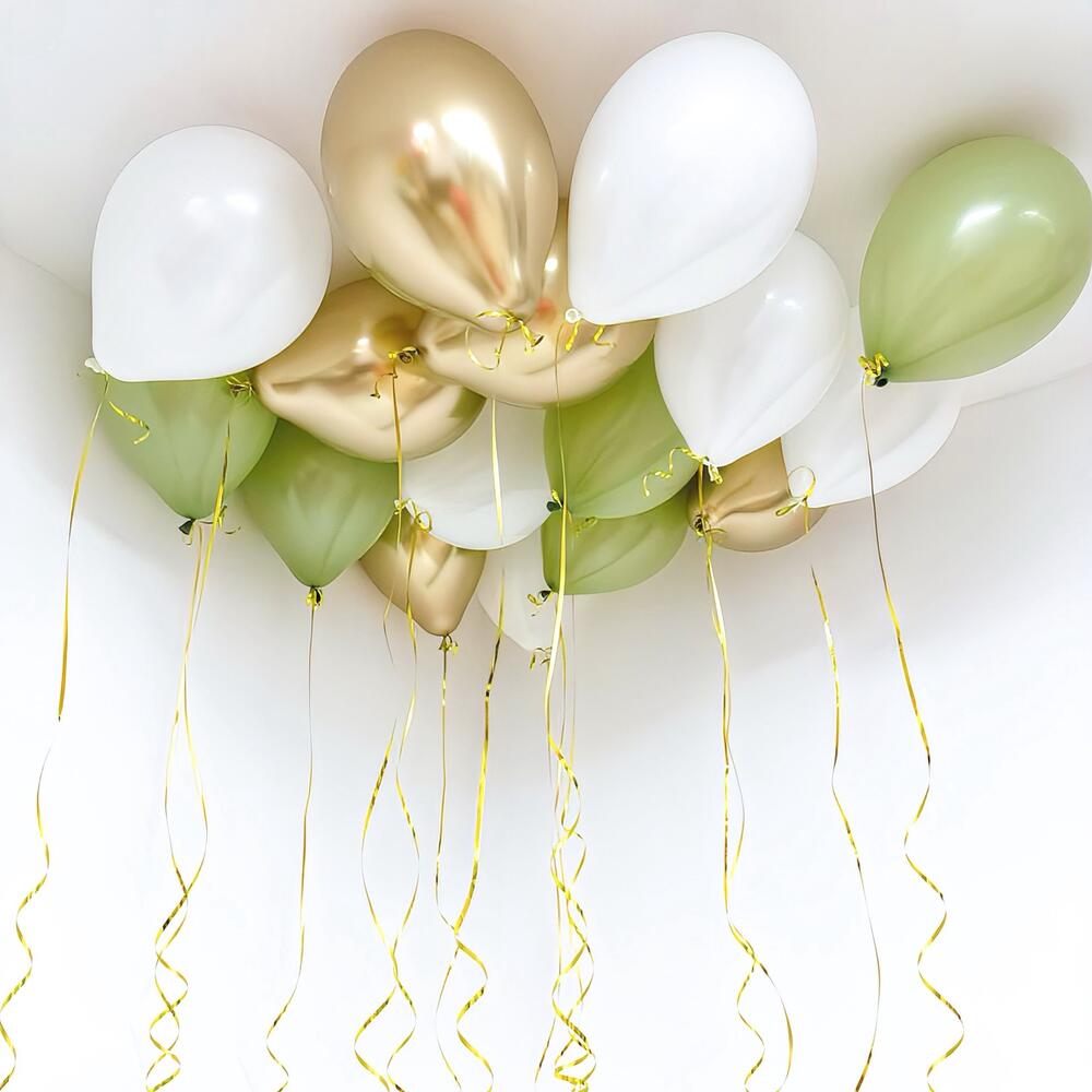 Сет из шаров «Белый, оливковый, золото» под потолок 15 шт