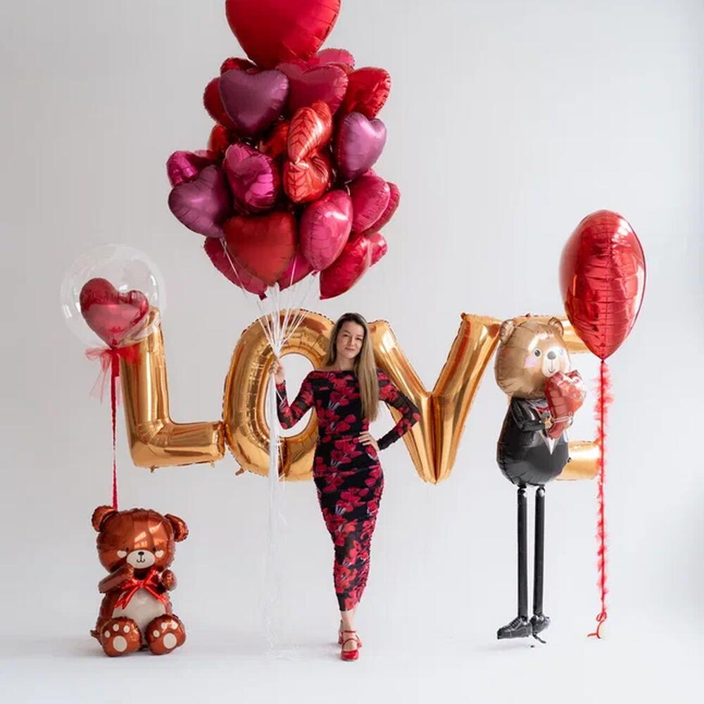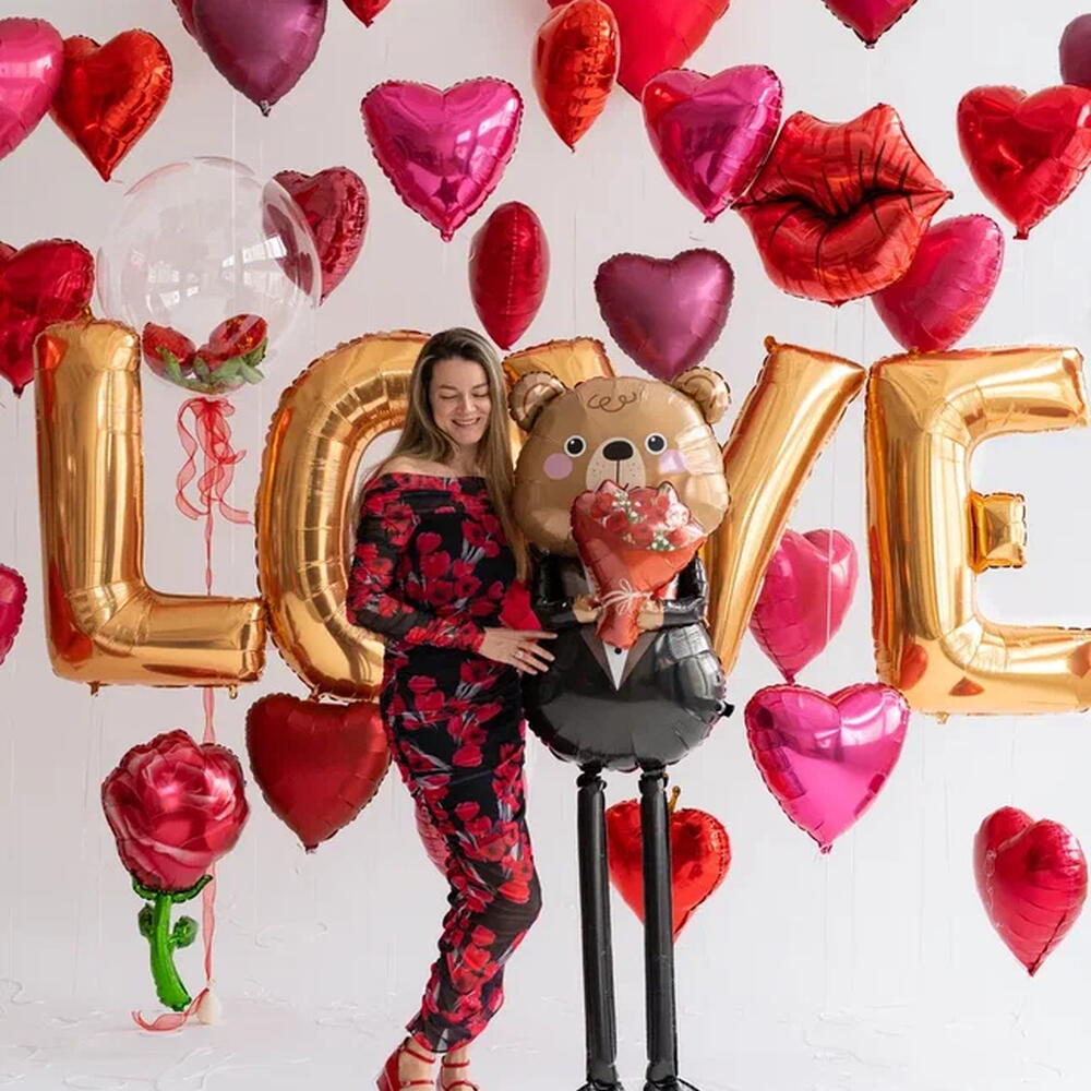 Выразите свои самые искренние чувства с помощью нашего потрясающего сета Красные сердца! Этот набор, полный страсти и нежности, станет идеальным украшением для романтического свидания, предложения руки и сердца, годовщины или любого другого события, когда хочется сказать Я люблю тебя!. В состав сета входят: 26 средних фольгированных сердец в разных оттенках красного: Красный (флекс) Красный (грабо) Сатин черри (грабо) Сатин руби ред (грабо) Пастель ред (флекс) Сатин помегранат (анаграм) Металлик бургунди (анаграм) Пинк неон матовый (агура) Сатин вива помеграната (агура) 4 средних сердца с нарисованными розами Фольгированная роза Фольгированные губы (поцелуй) Большое красное сердце 30 дюймов Среднее фольгированное сердце с короной Большое красное сердце на ленте из фатина Баблс с мини-сердечками и тюльпанами внутри Баблс с сердечком внутри и бантом Надпись LOVE из фольгированных букв золотого цвета Плюшевый мишка сидячий, наполненный воздухом Мишка-джентльмен с цветами 40 грузик соответсвующего цвета для удерживания всех шаров