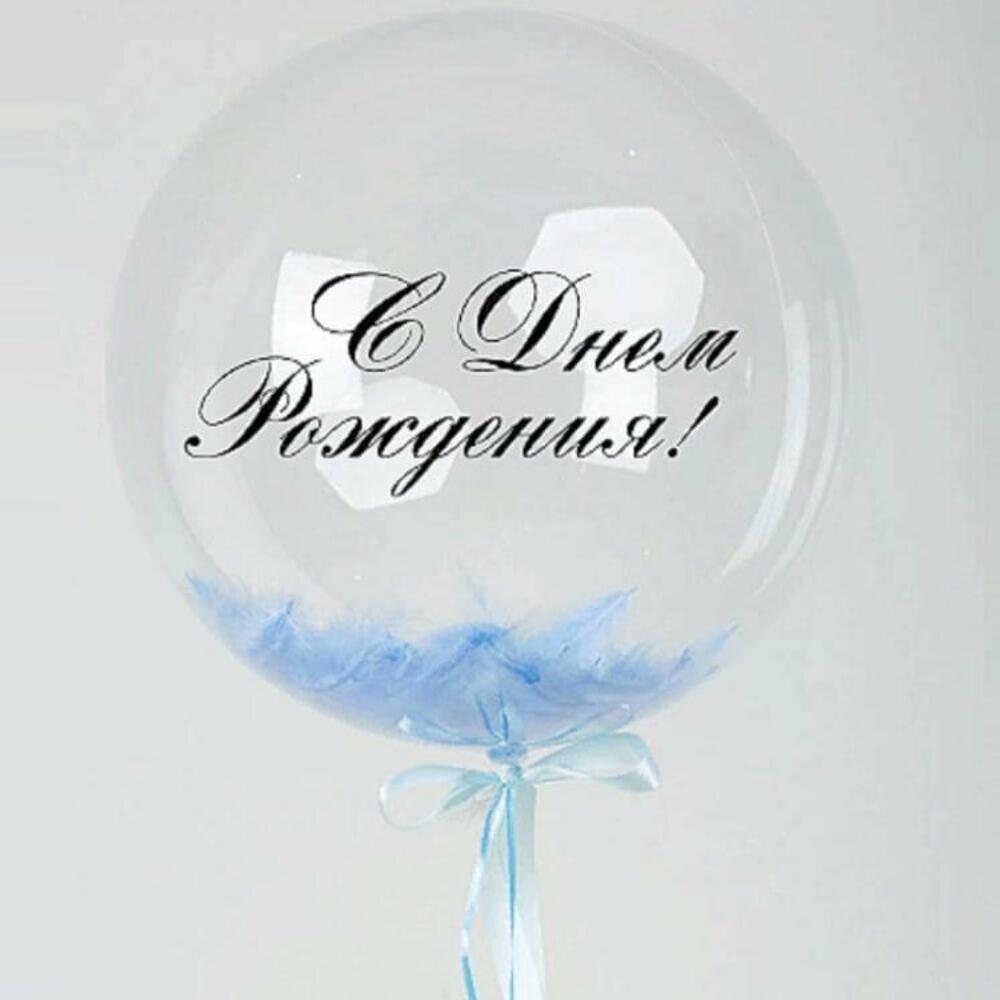 Прозрачная сфера с гелием , перьями и надписью на заказ, грузик для шара Диаметр шара не менее 60см Все шары доставляются в транспортировочном пакете
