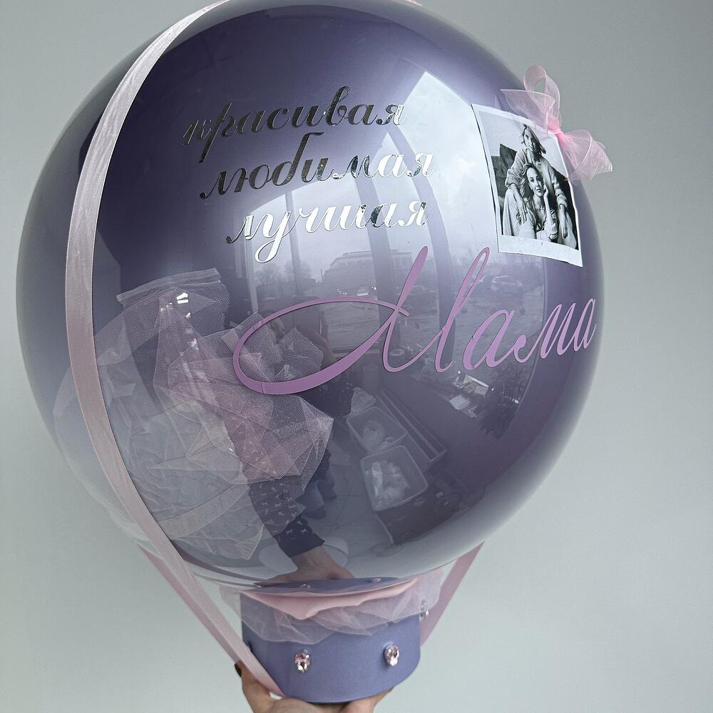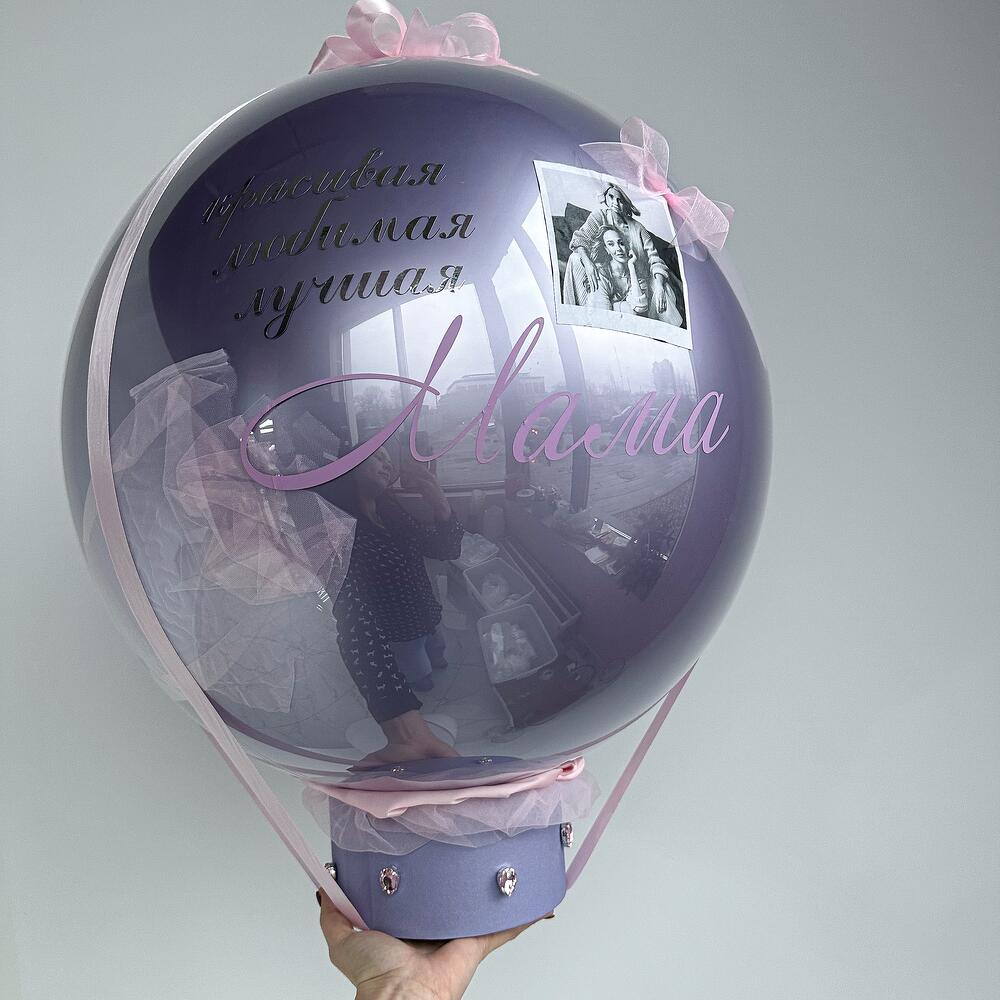 Шар с фото и надписью ко Дню Мамы в шляпной коробке с лентами