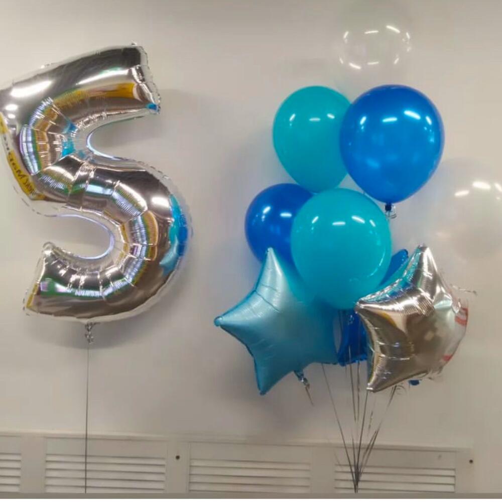 Фонтан из 10 Шаров Цифра -1 Звезда фольга -3 Грузик -2 Шар латексный -6 Пакет транспортировочный-1