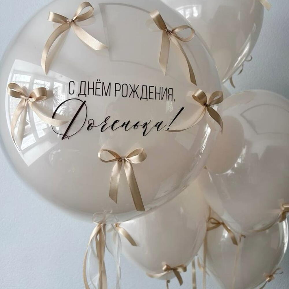 1 шт большой шар эффект стеклянного шара с бантиками ( возможно нанести надпись- в подарок) Фонтан из 5 шт шаров: 5 шт латексные шары эффект стеклянного шара с бантиками Все латексные шары обработаны специальным полимерным гелем для длительного полета шаров. Шары доставляются в специальных транспортировочных пакетах. Отличный подарок маме, дочери, жене.