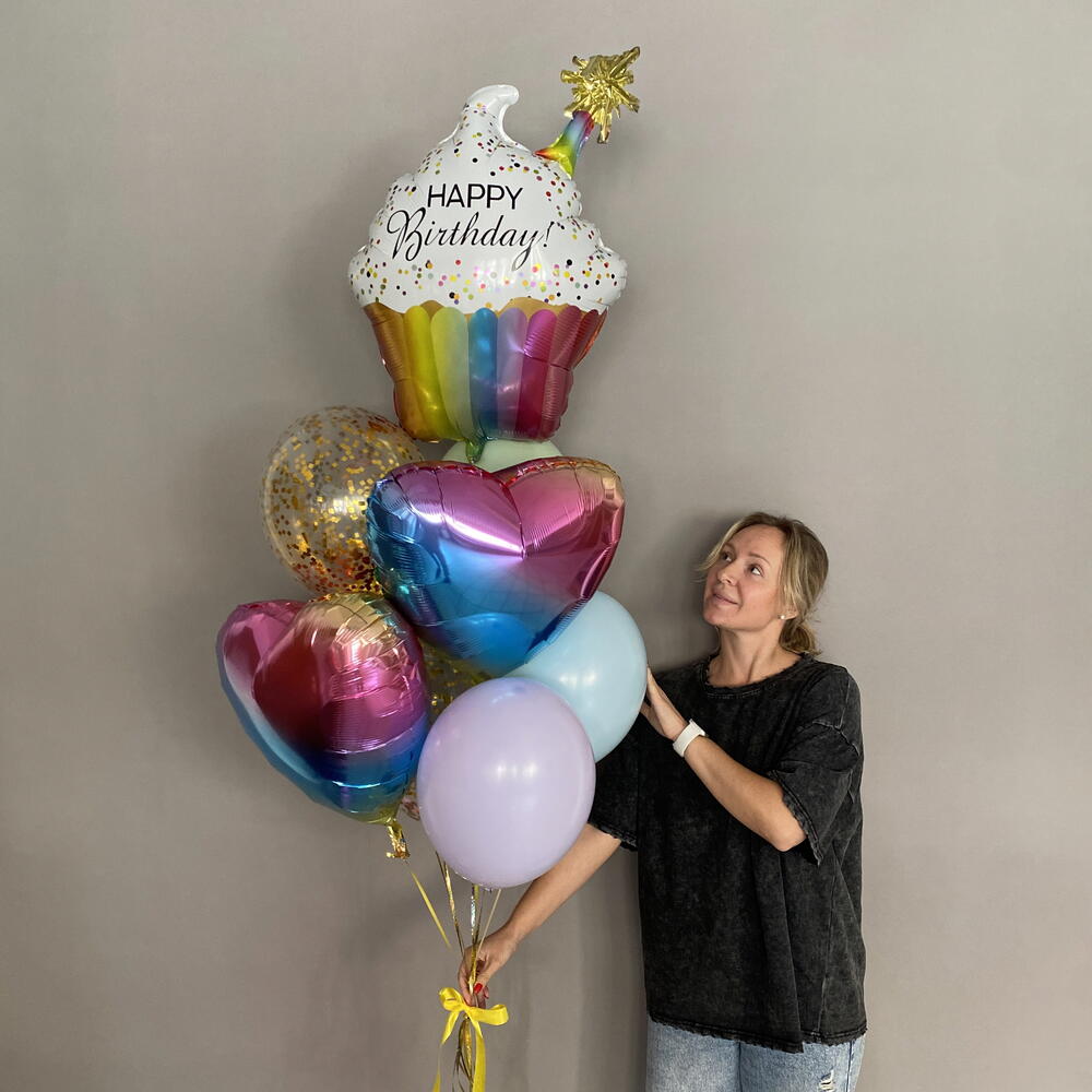 Шары на день рождения для девушки, для девочки или для коллеги с шаром кексик с днём рождения