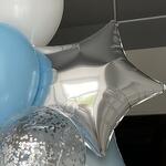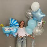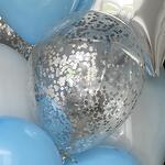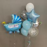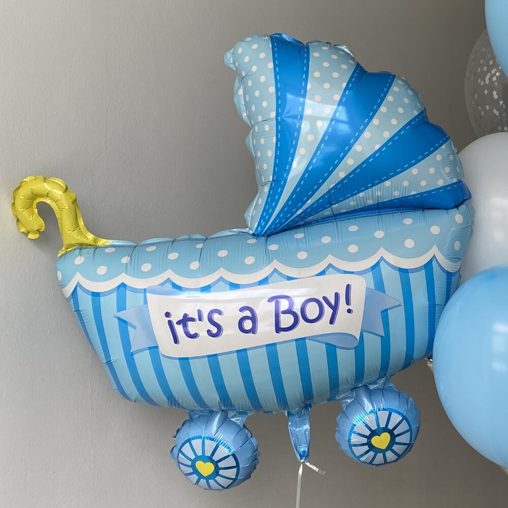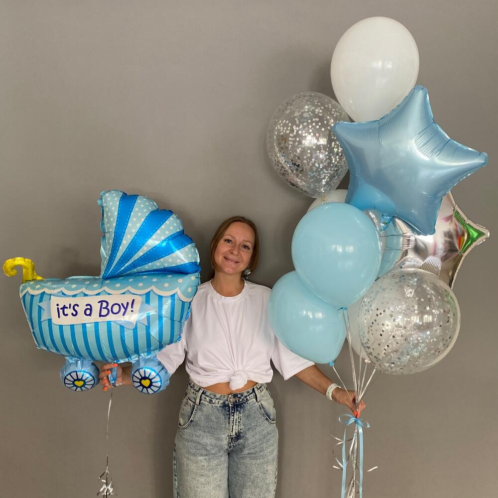 Набор состоит из: 🎈Фонтан: - 3 голубых шара 35см - 3 белых шара 35см - 2 шара с серебряным конфетти 35см - 1 фольгированная звезда голубая 46см - 1 фольгированная звезда голубая градиент 46см - грузик 🎈Колясочка голубая фольгированная 89см *заказ будет доставлен в плотном прозрачном транспортировачном пакете