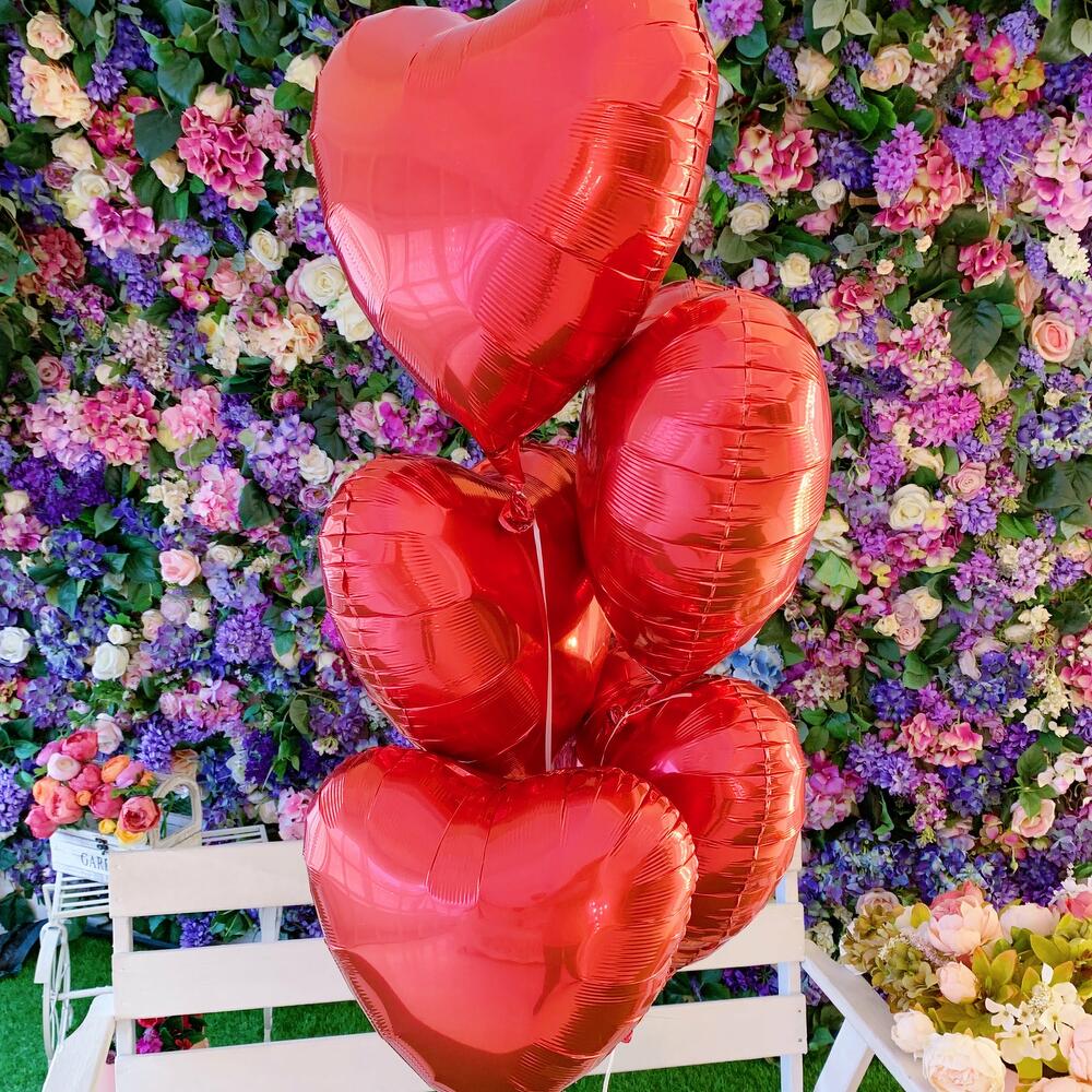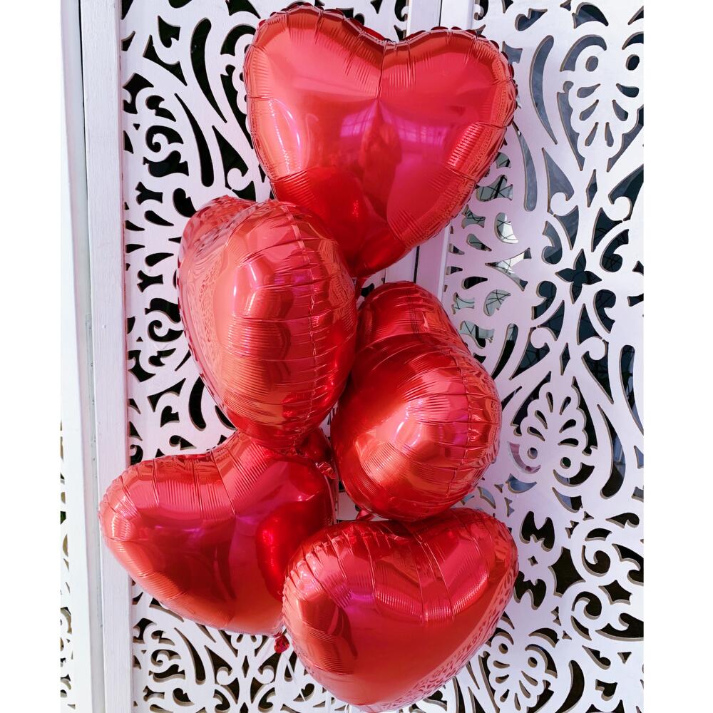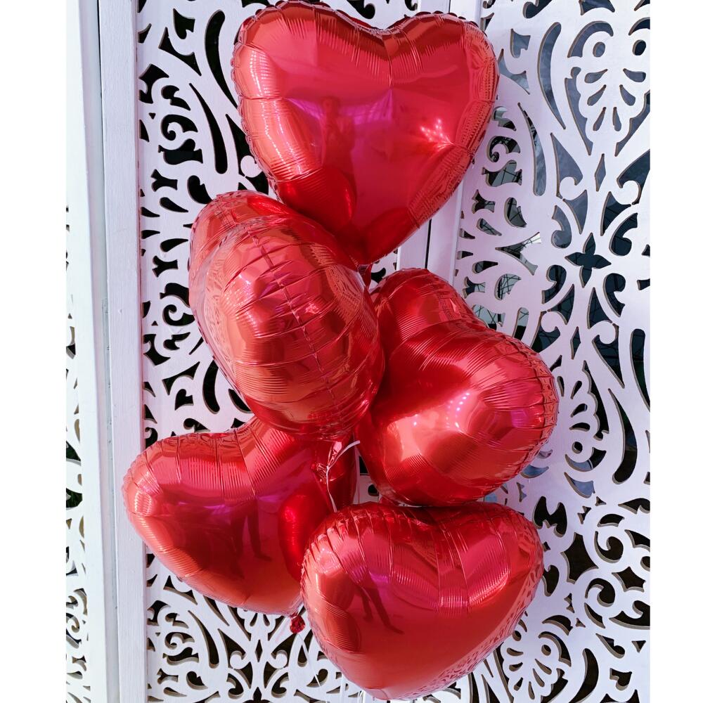 Сет из фольгированных воздушных шаров наполненных гелием; Цвет красные; Количество в наборе 5 шт; Размер 18 дюймов; Время полета от 5 суток;