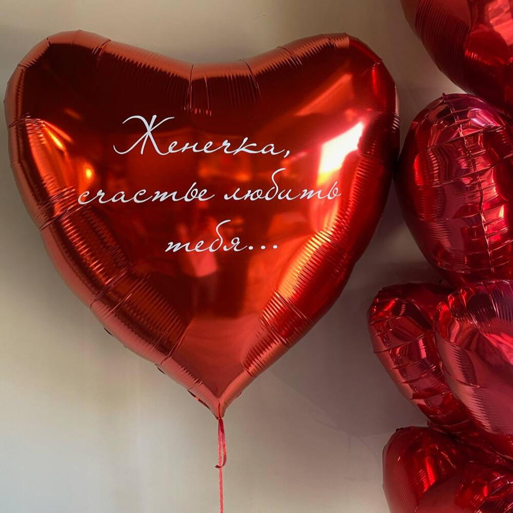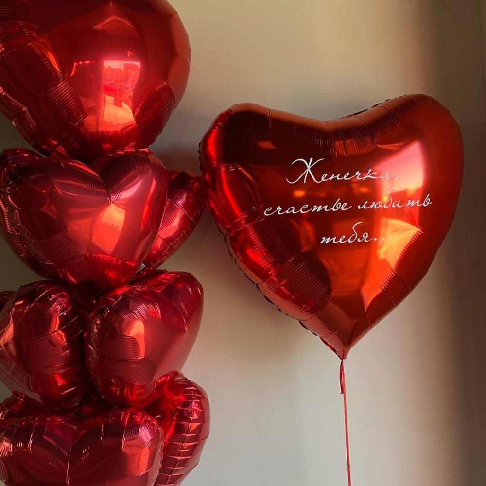 Набор из шаров, 10 шаров фольга сердце малое и сердце гигант с любой надписью
